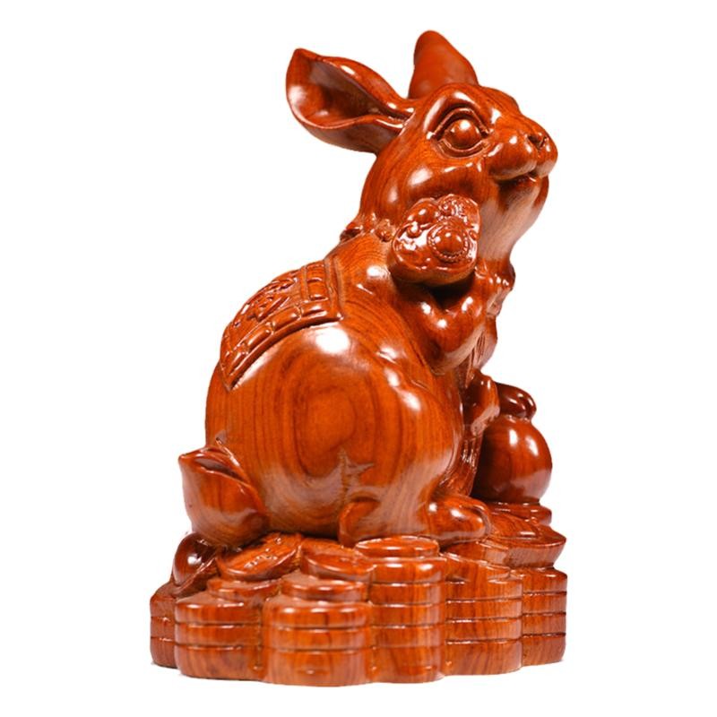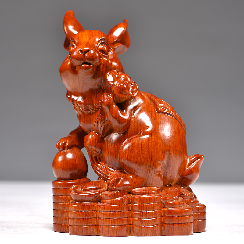 花梨木雕兔兔可爱小兔子一对摆件送礼物办公桌饰品桌面红木工艺品