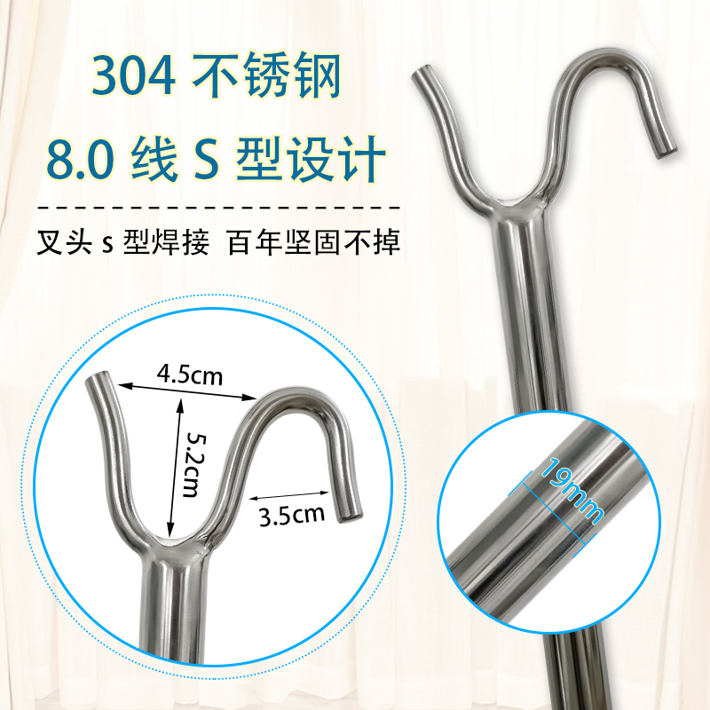 1支正体非伸缩304不锈钢晾衣撑衣杆焊接S型叉头特厚重450克126cm