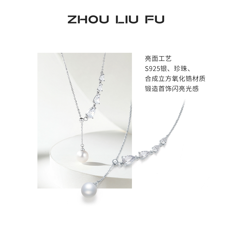 周六福项链女珍珠人鱼链坠S925银高级感小众送女友节日礼物