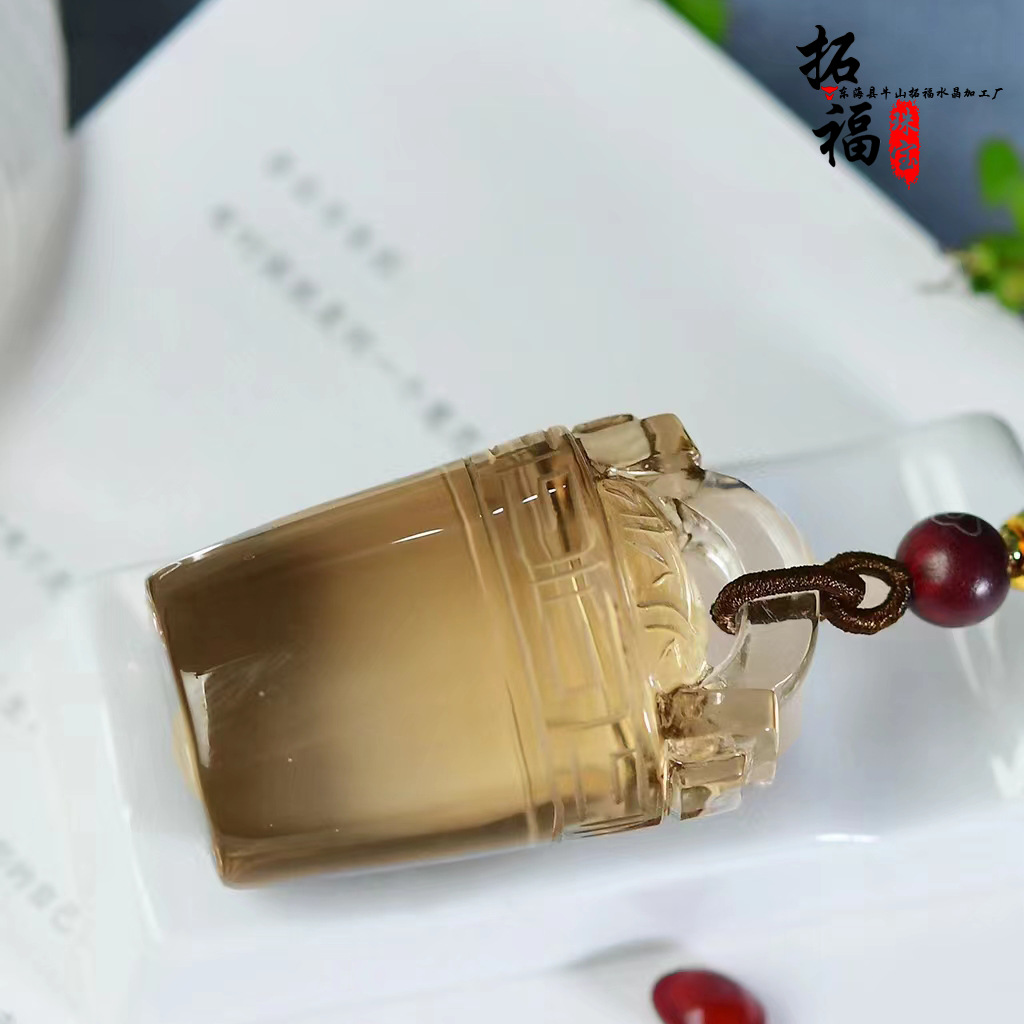 厂家批发天然茶水晶一桶金吊坠项链毛衣链项坠饰品礼物首饰情侣