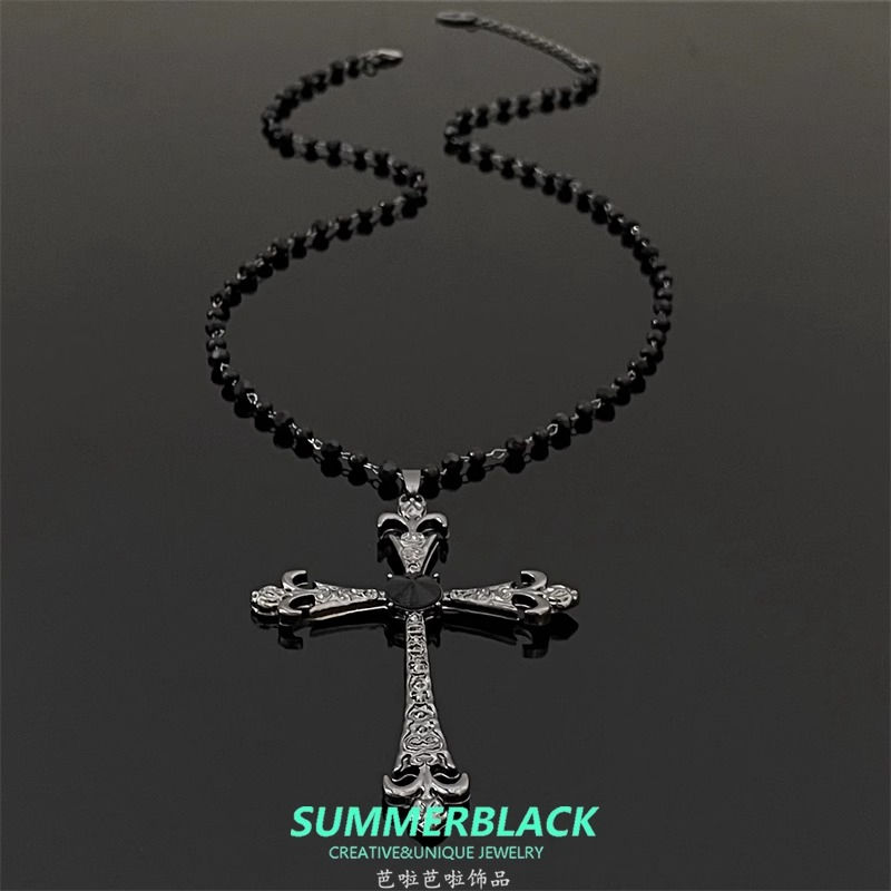 哥特风黑色十字架项链女秋冬卫衣毛衣链长款轻奢高级感亚比配饰