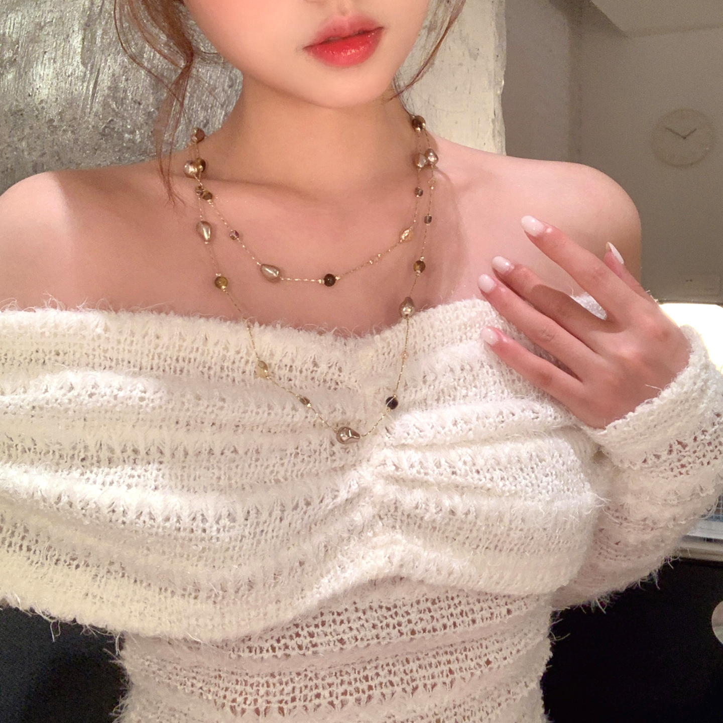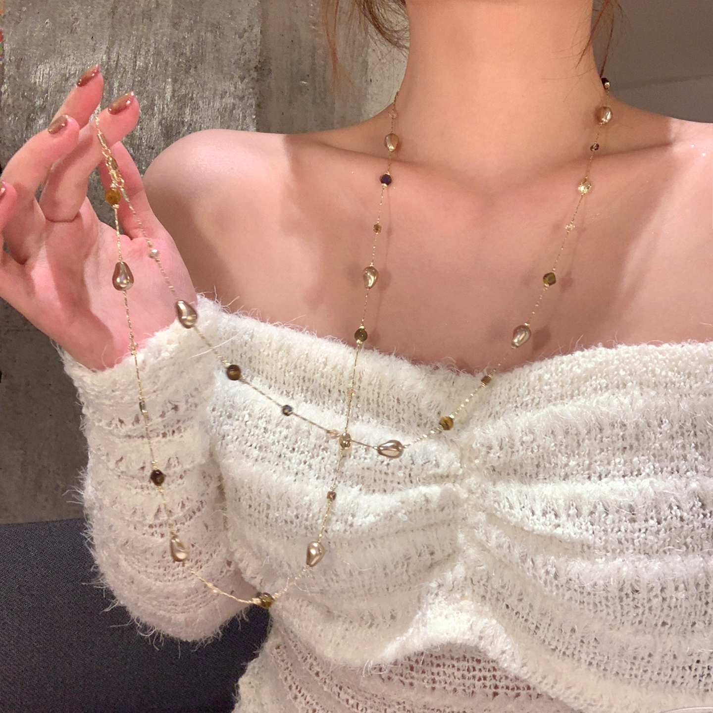 复古不规则虎眼石长款多戴式项链女高级感小众设计毛衣链配饰颈链