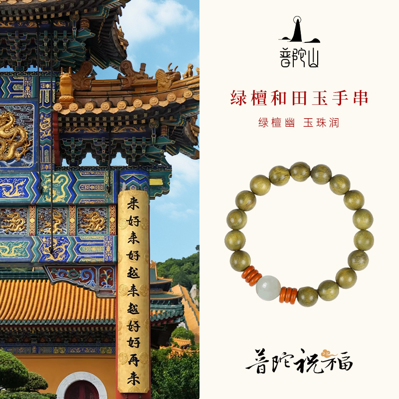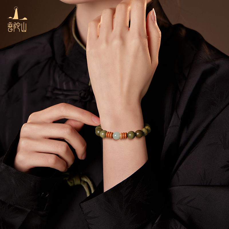 普陀山天然绿檀手串官方正品田玉好运珠手链情侣文玩串珠送女生款