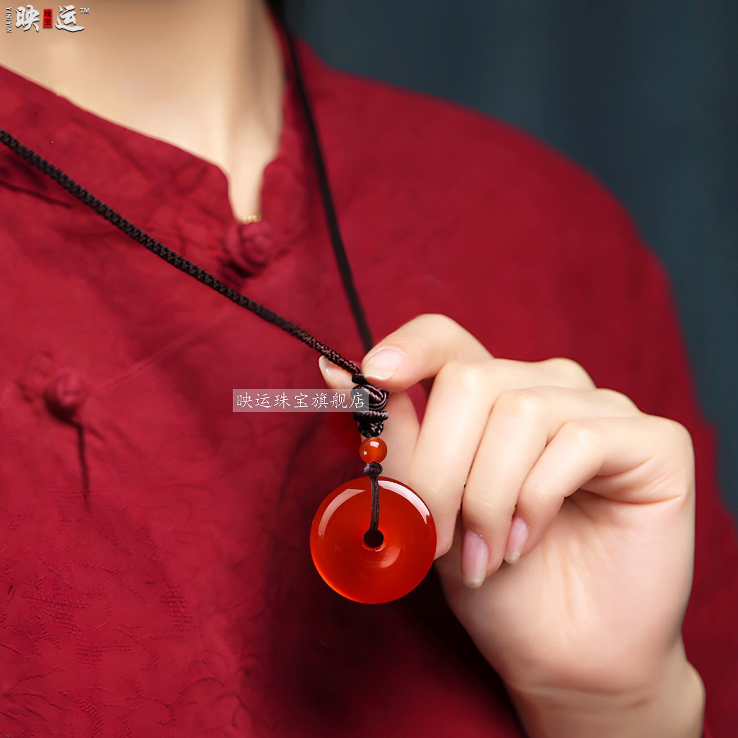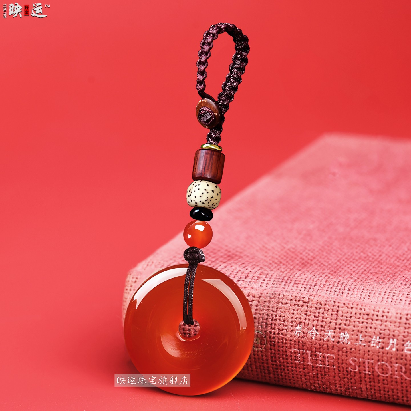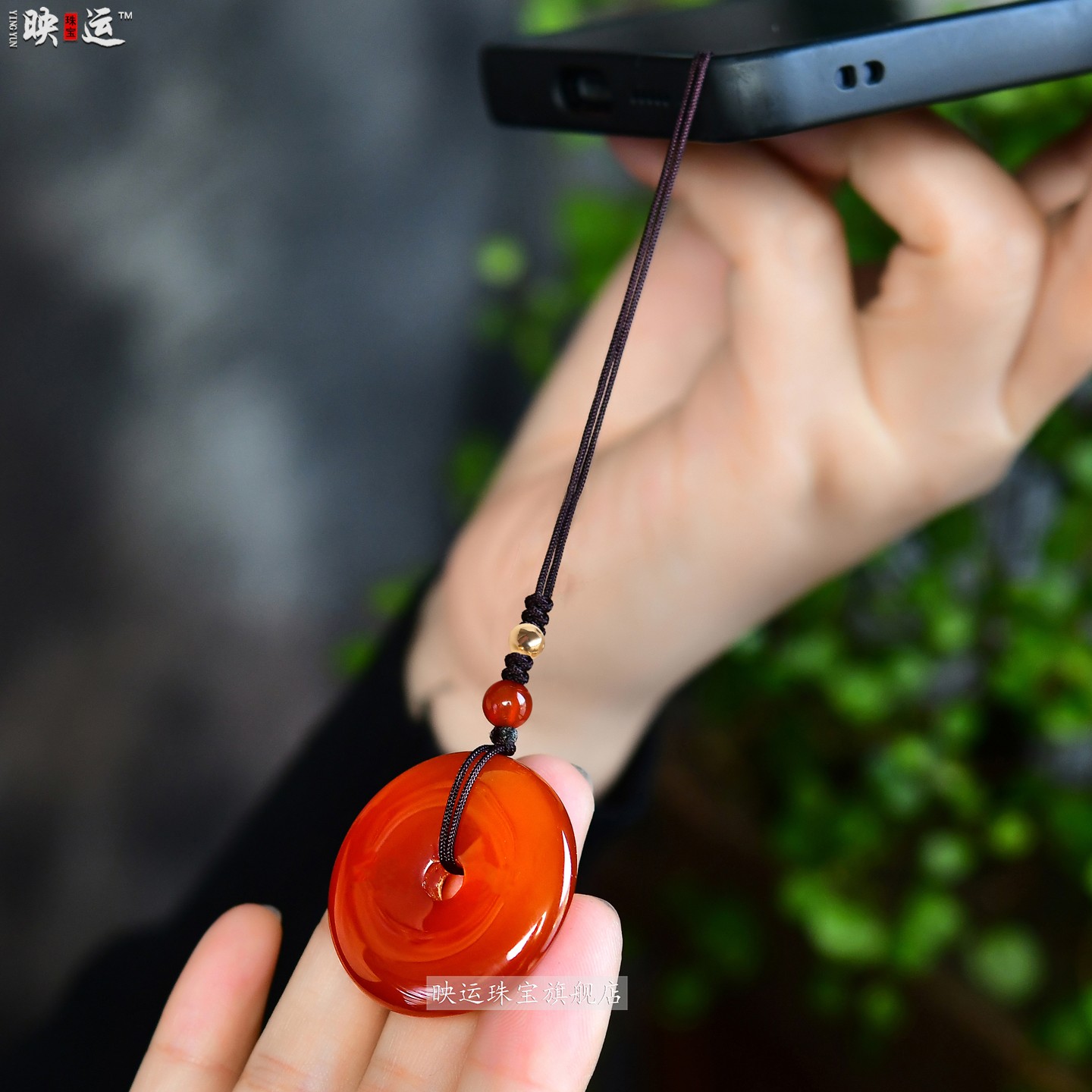 天然红玛瑙平安扣挂件男女玉石怀古扣情侣吊坠缺火补火饰品钥匙扣