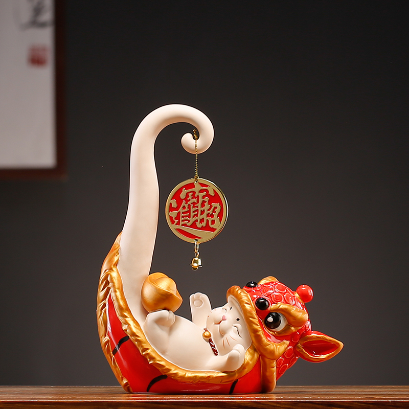 新中式招财猫摆件乔迁新居店铺陶瓷发财猫开业礼品收银台发财猫