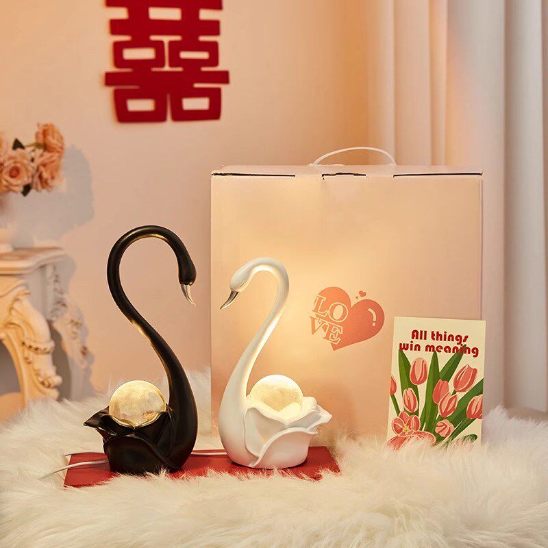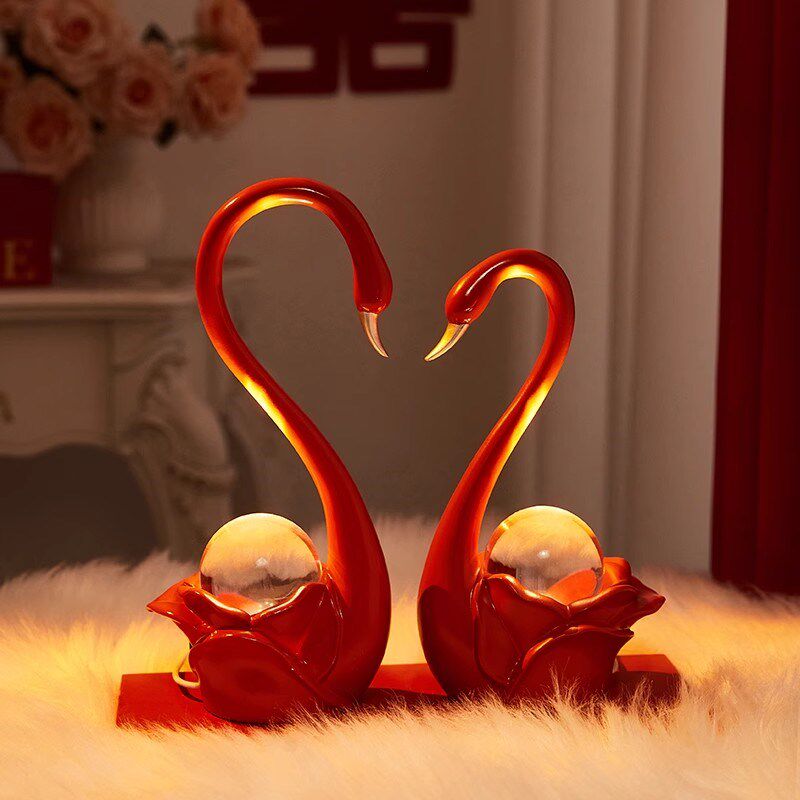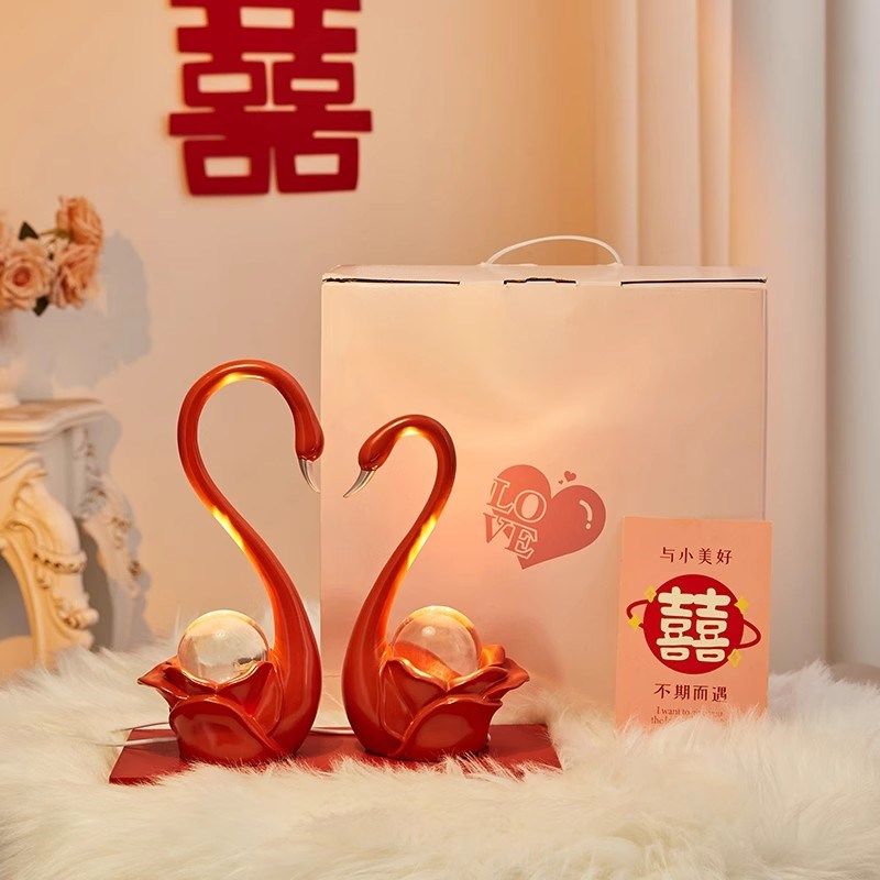 天鹅情侣摆件一对床头长明灯订结婚礼物品送新人新娘闺蜜高档实用