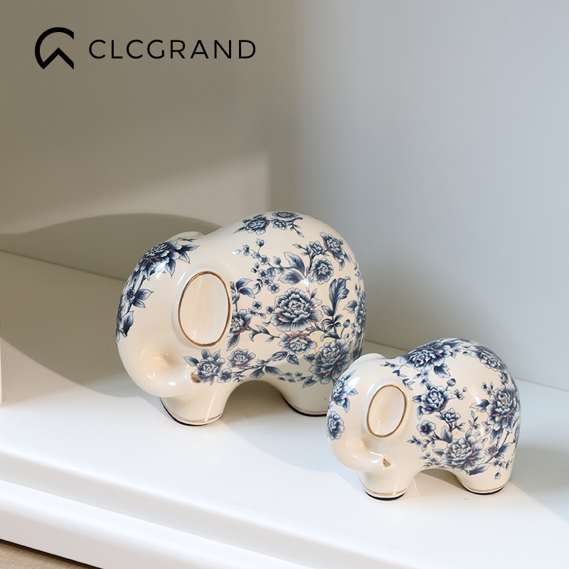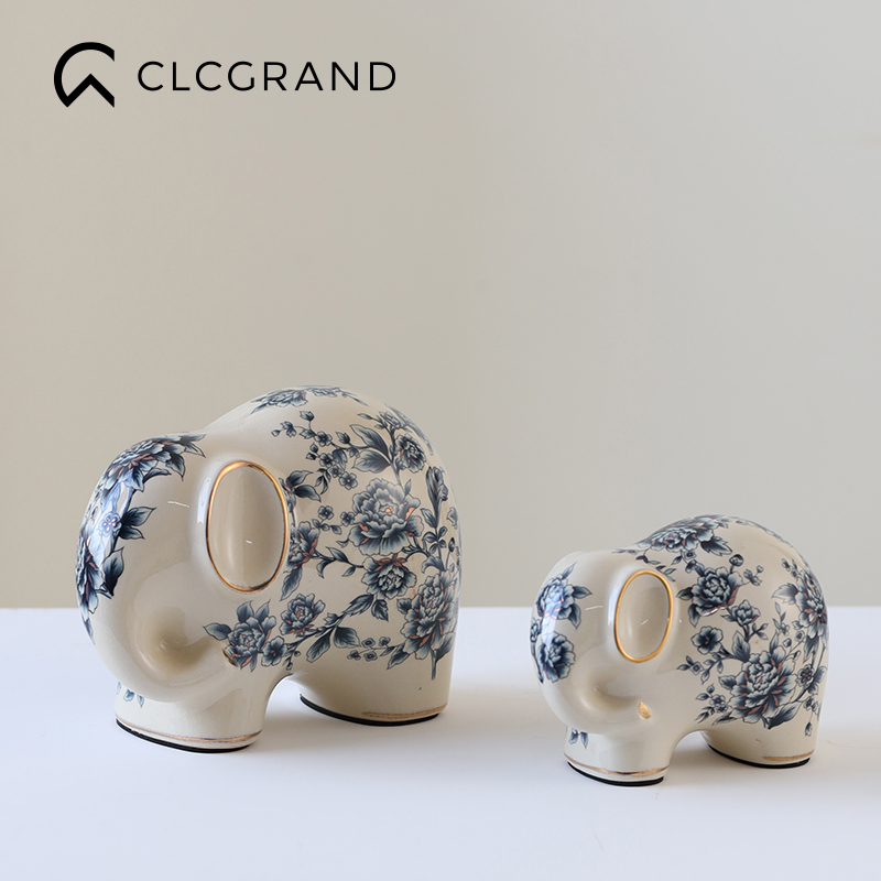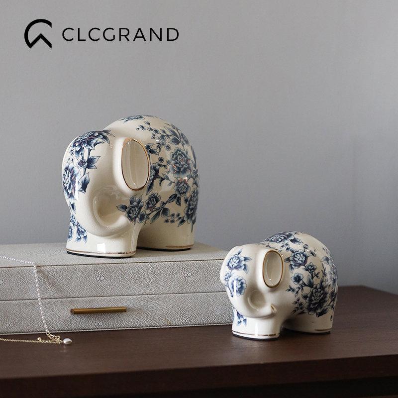 新中式大象陶瓷摆件家居客厅书房卧室装饰宋代美学桌面玄关小物件