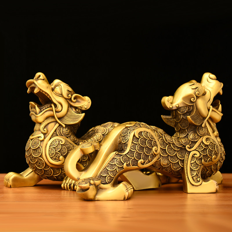 铜貔貅摆件一对招财金钱貔貅皮丘客厅酒柜收银台装饰礼品店铺纯