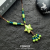 YSHXS 绿色星星串珠中式民族风项链女小众设计高级感毛衣链配饰