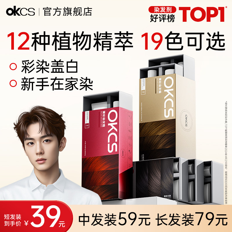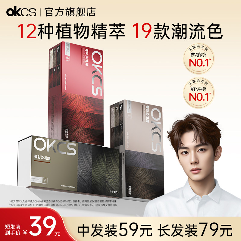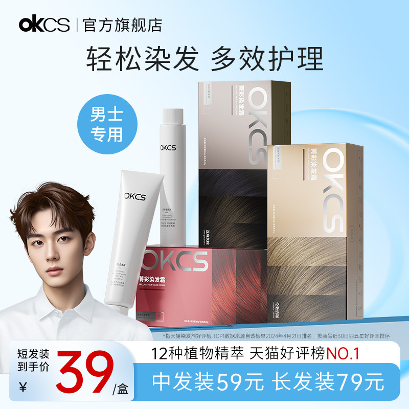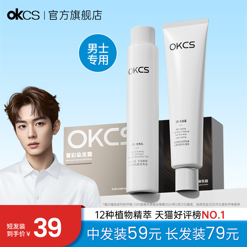 OKCS染发膏男士专用染发剂植物纯女自己在家染发黑色官方旗舰正品