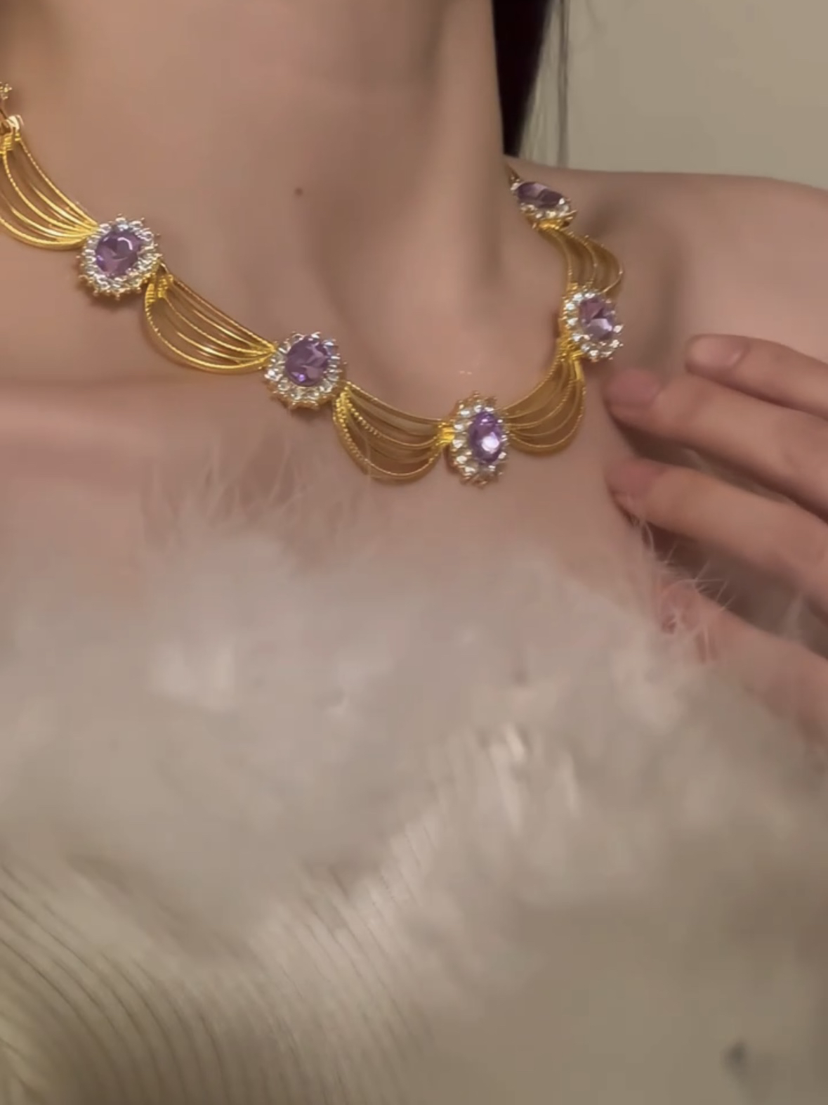 紫色韵味!复古宫廷风精致贵气感项链女超闪锆石锁骨链耳饰套装