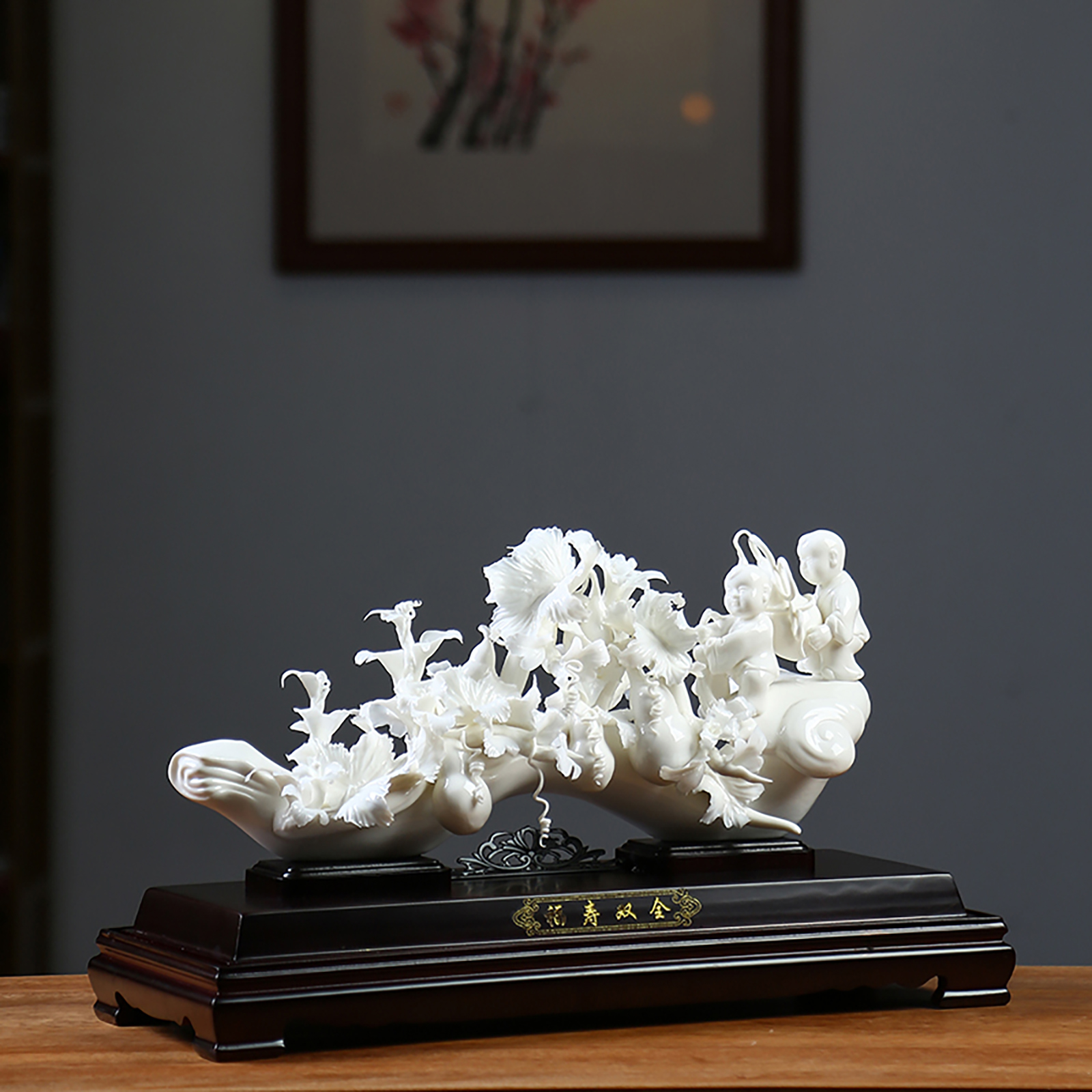 福寿双全老人长辈贺寿礼品陶瓷花手工摆件中式工艺品装饰品可定制