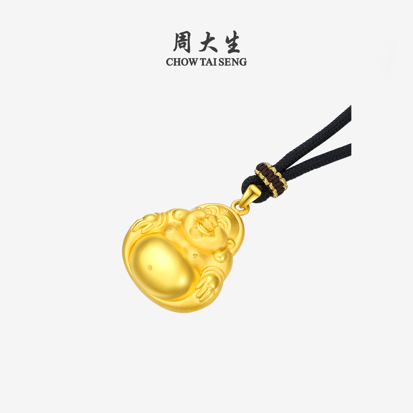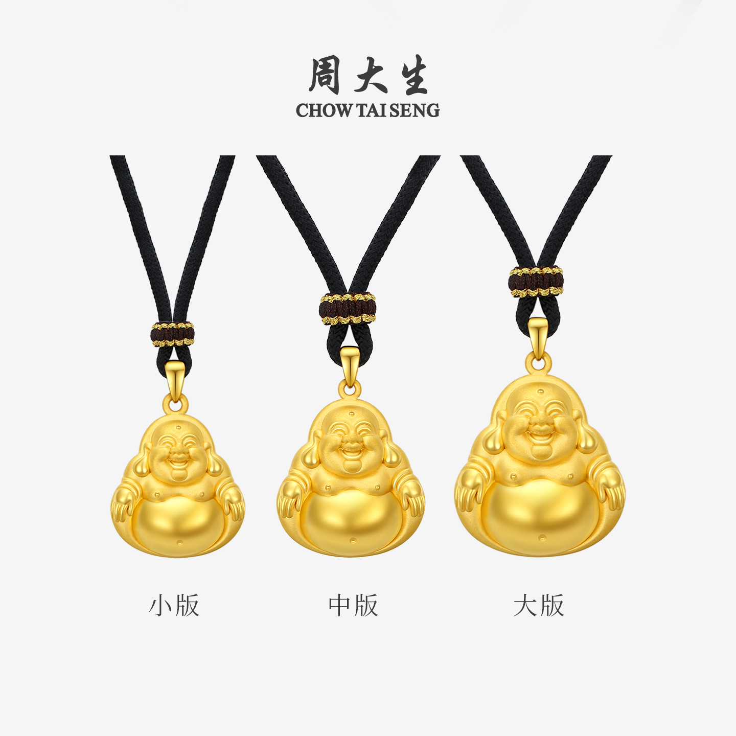 周大生黄金吊坠女款足金佛公挂坠硬金笑面弥勒佛圣诞礼物送女朋友