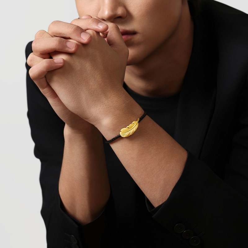 周生生爱情密语羽毛手链足金丘比特羽毛皮绳手绳89739B