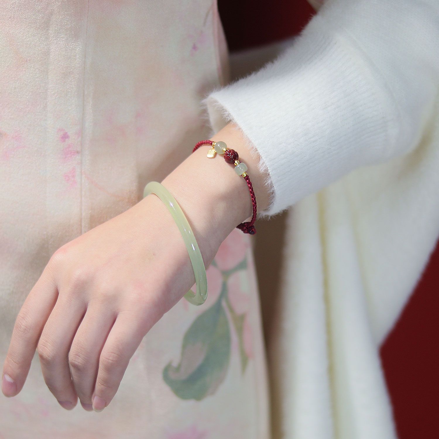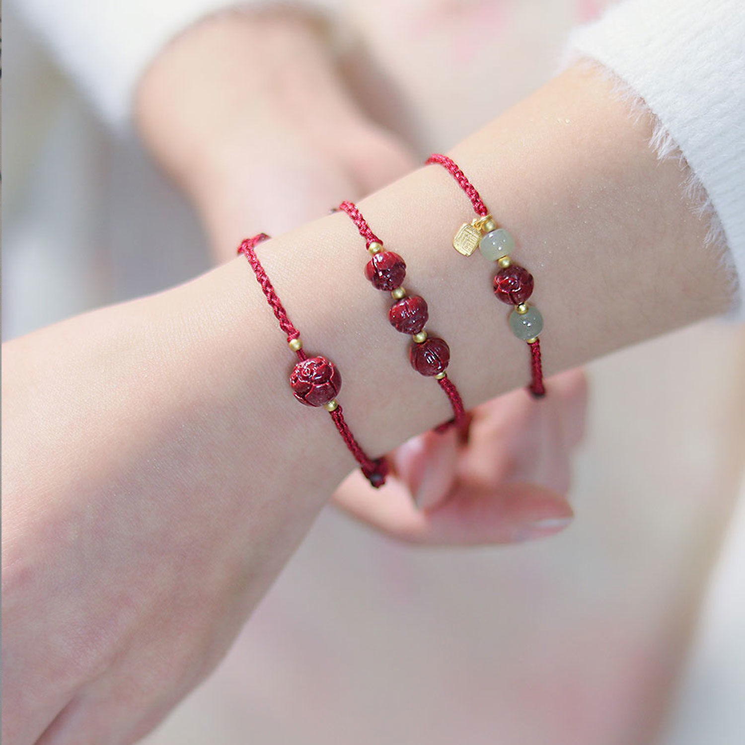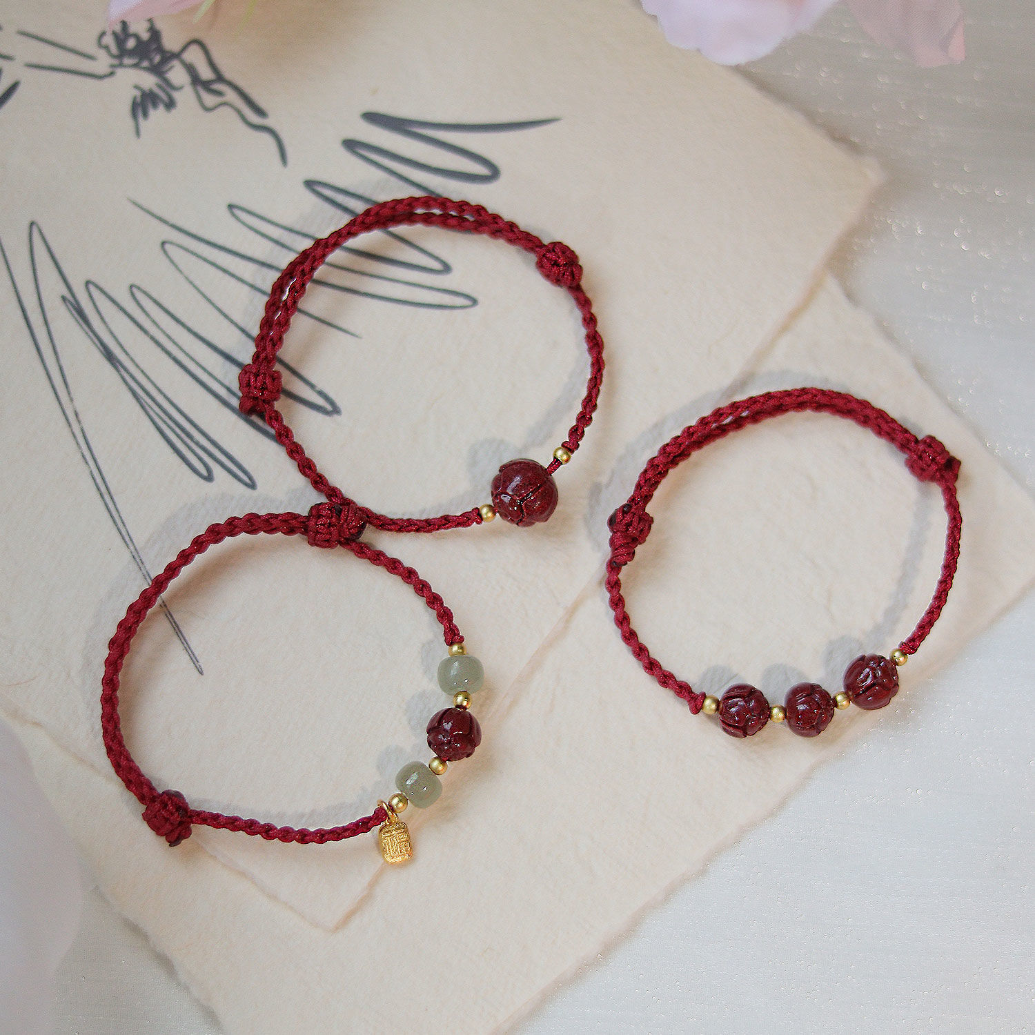莲花上岸朱砂手链天然和田玉福牌红绳编织闺蜜手链转运招财女饰品