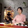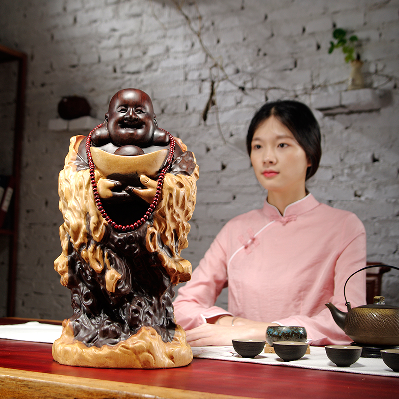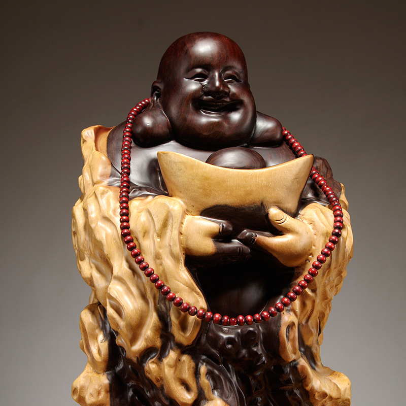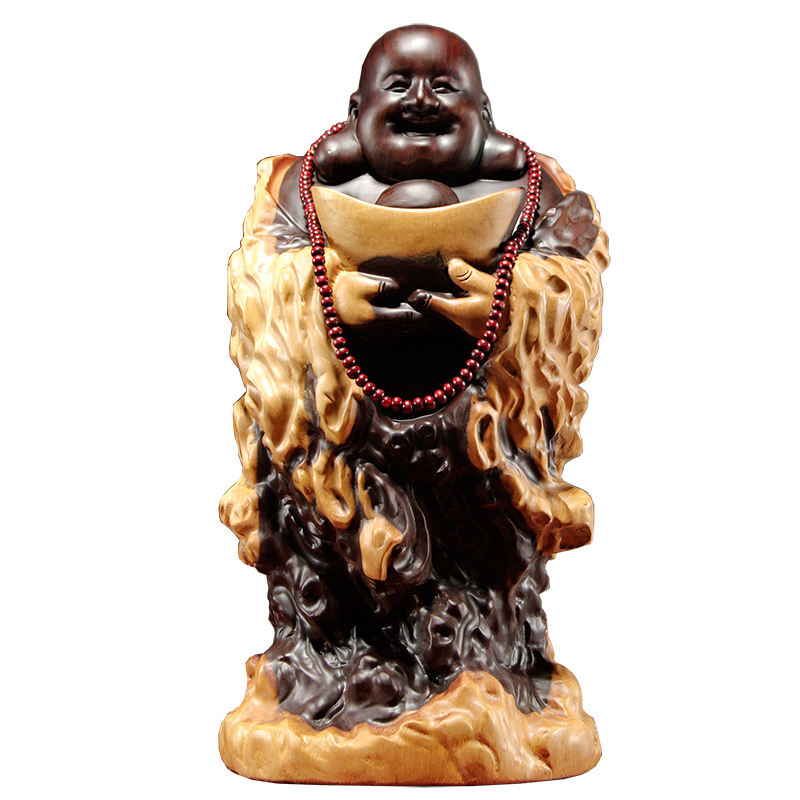 黑檀实木雕刻弥勒佛根雕摆件元宝笑佛红木家居客厅装饰工艺品送礼