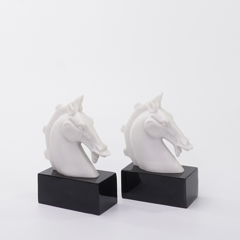 现代新中式创意白色马头书档书靠办公室书房书柜客厅酒柜装饰摆件