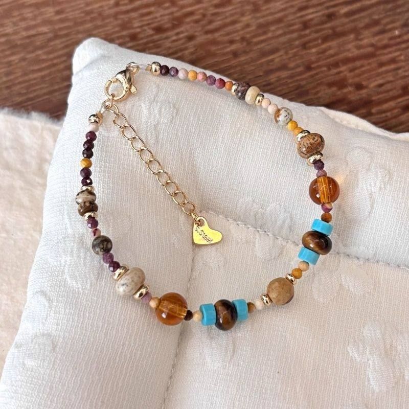钛钢天然石串珠太阳花项链中式复古锁骨链轻奢高级感度假风项饰女