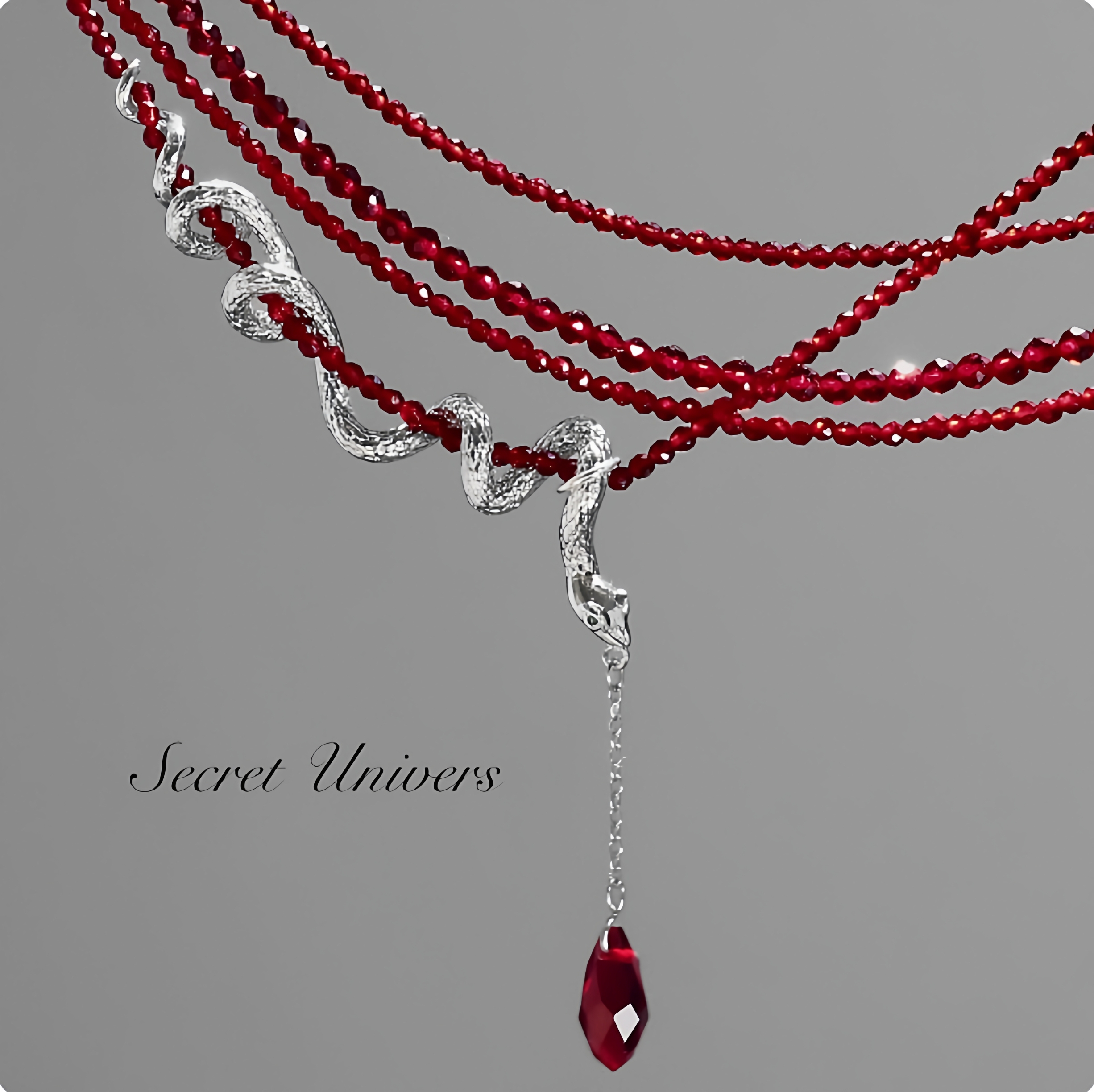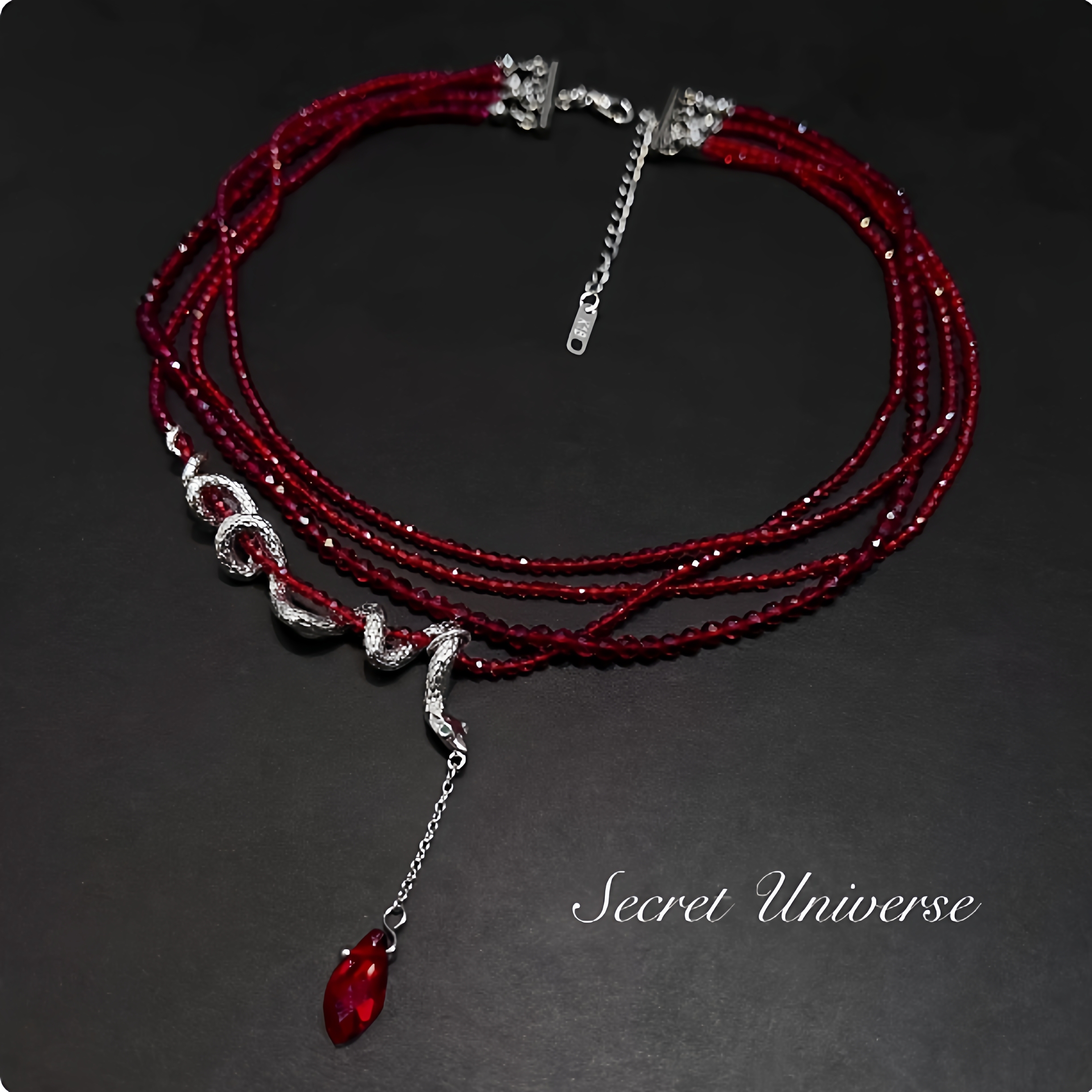 暗黑氛围感红色水晶串珠蛇形项链叠戴小蛇颈链水滴chocke锁骨链女