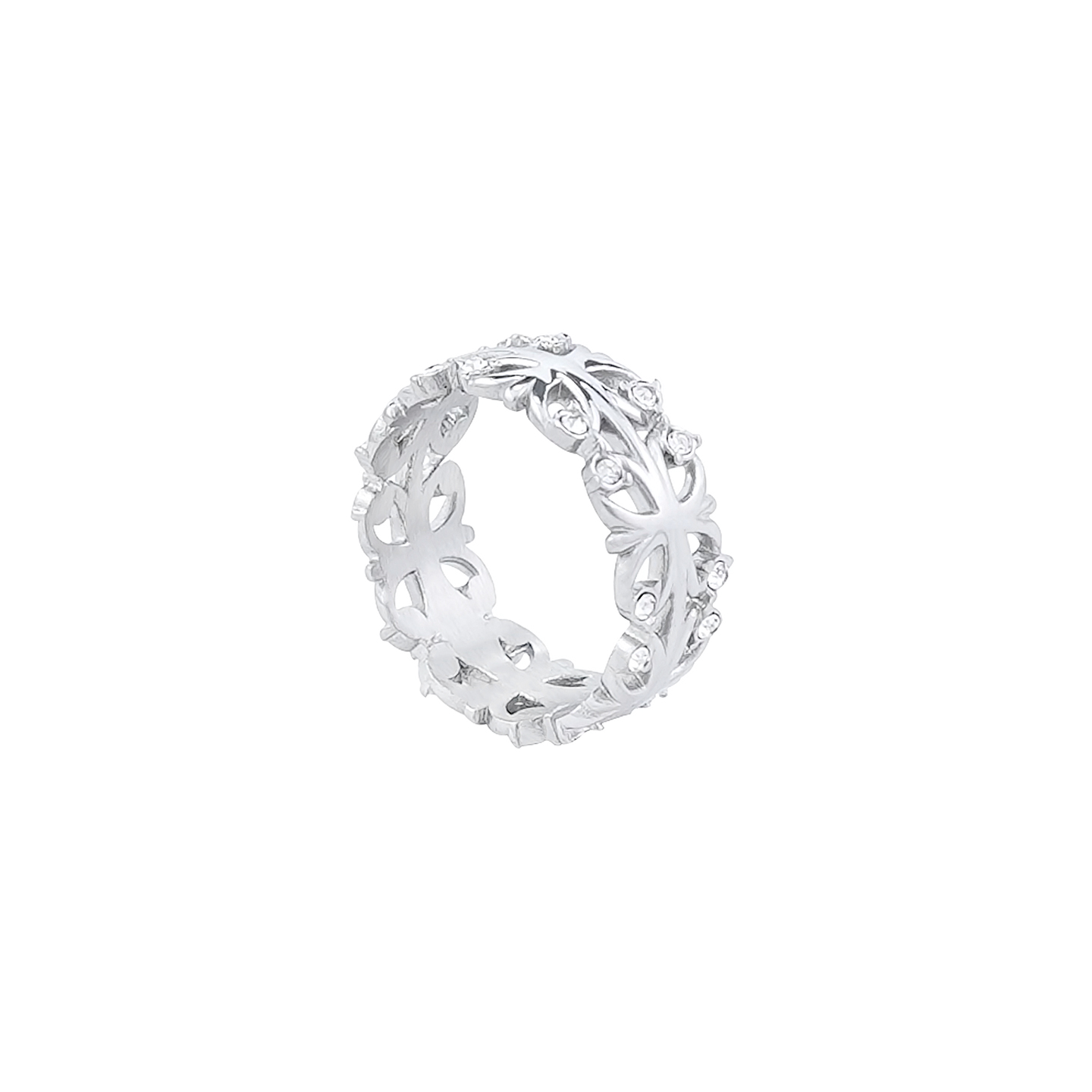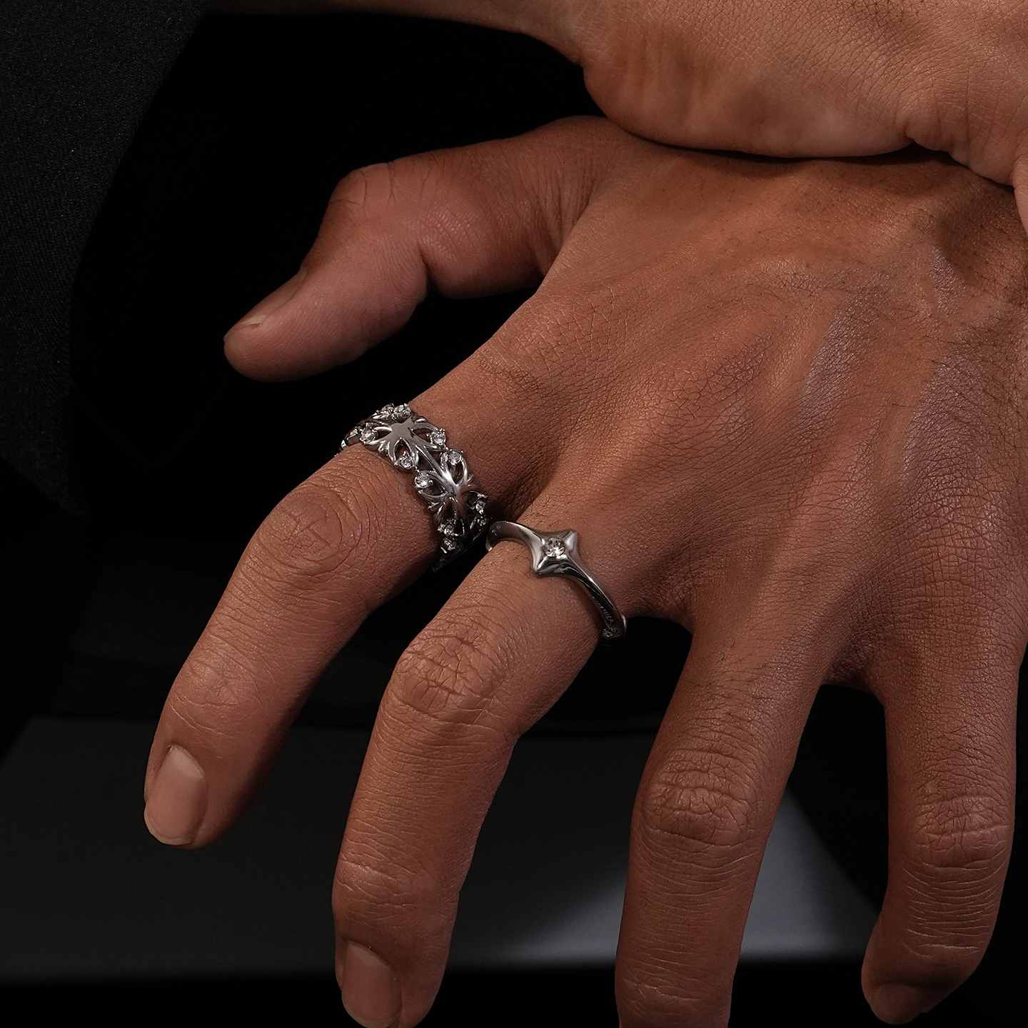 SAZ 十字鸢尾花镶钻时尚个性镂空花朵戒指男女小众设计感百搭指环