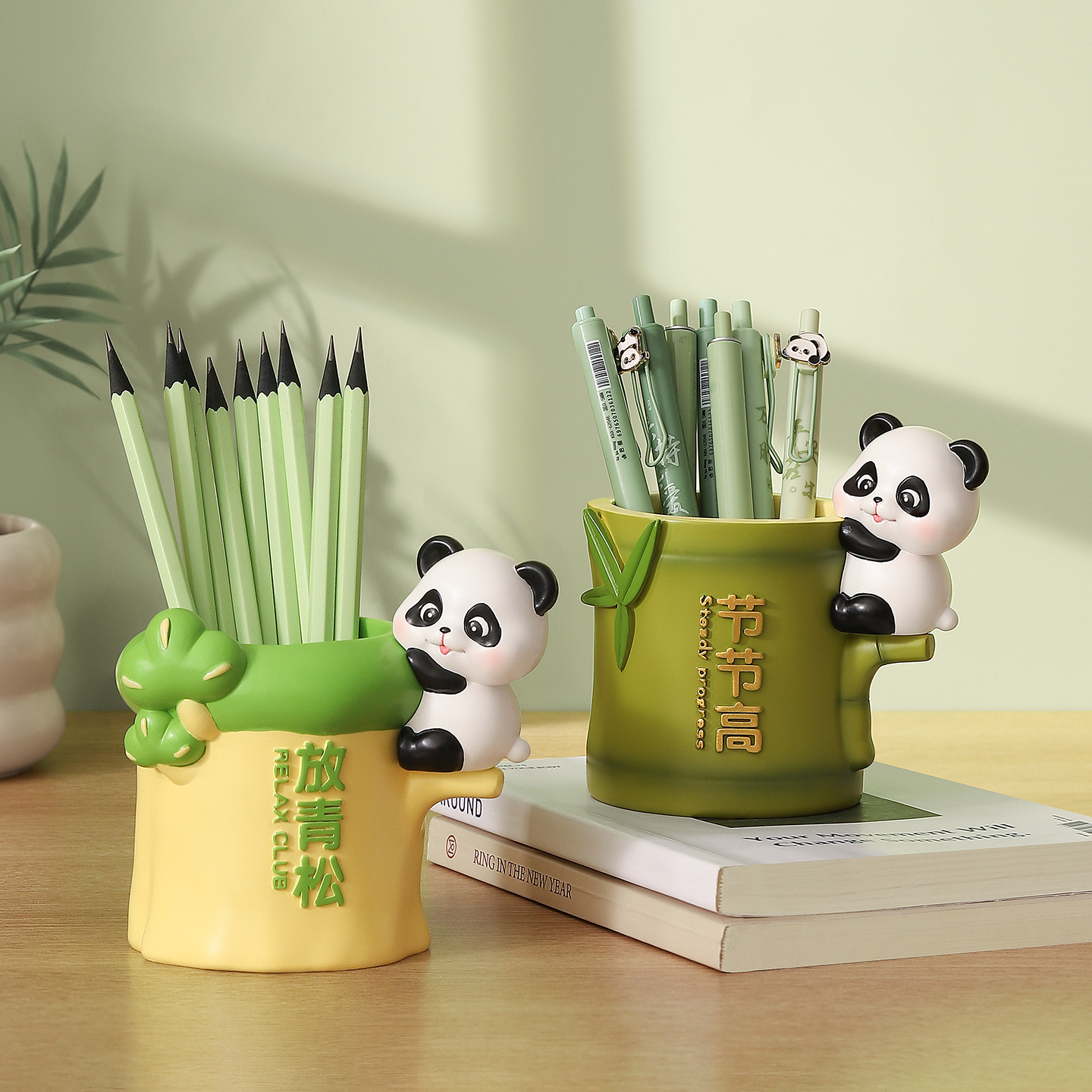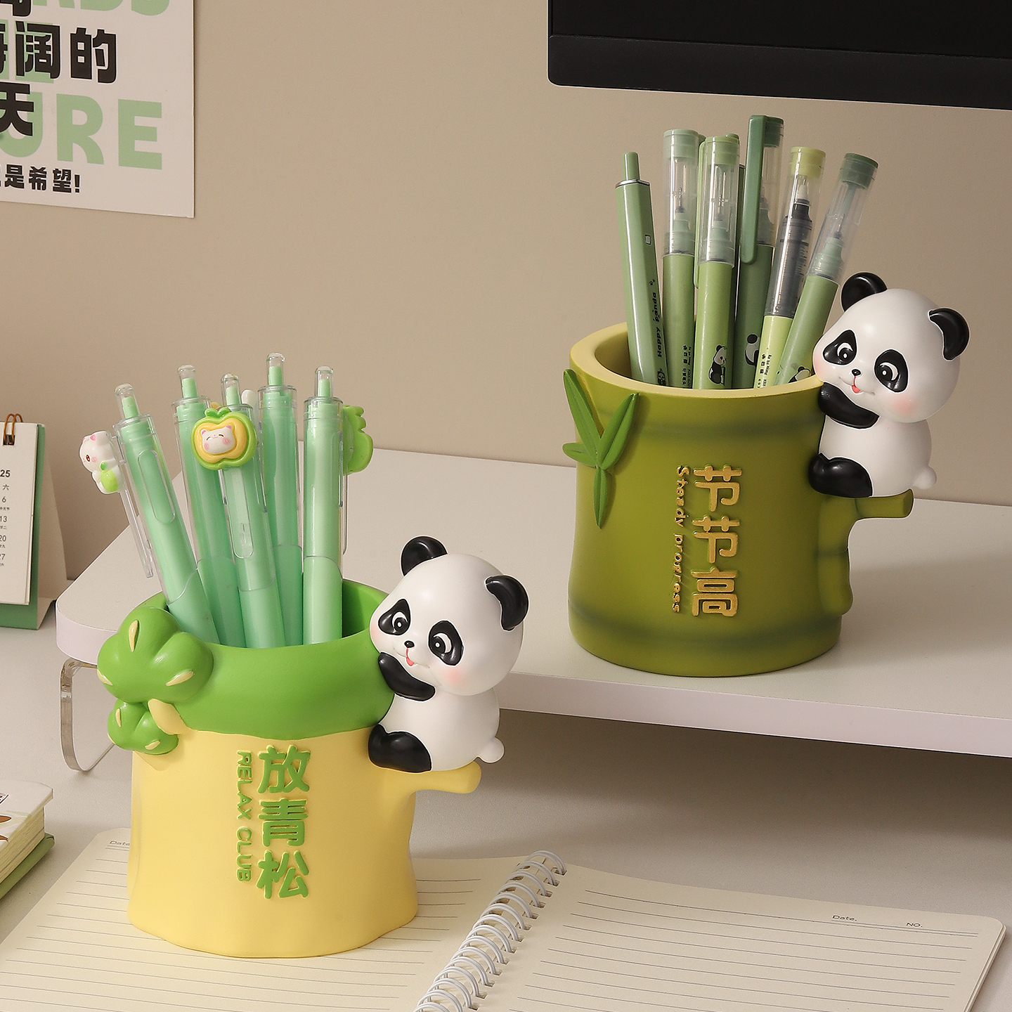 节节高升熊猫周边笔筒摆件办公桌面装饰工位情绪稳定神器生日礼物