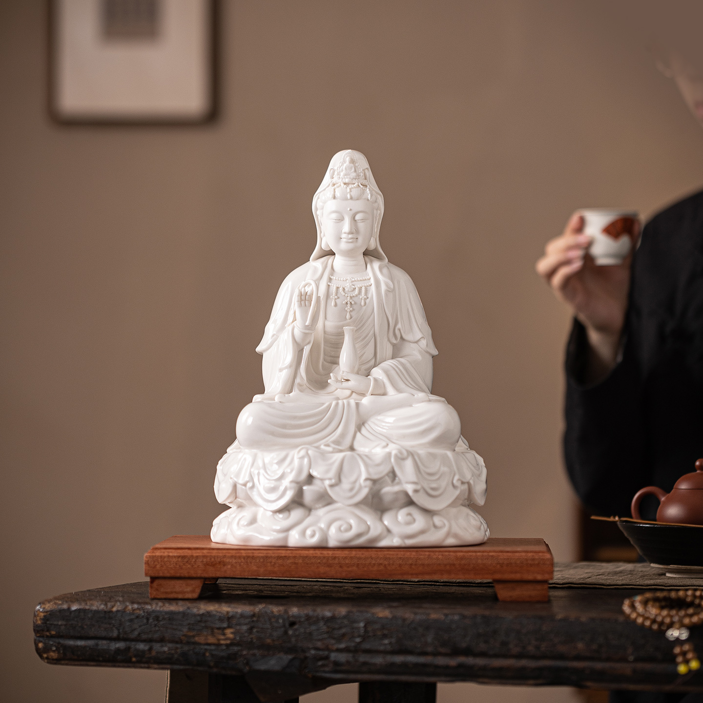 德化白瓷祥云观音佛像菩萨家用客厅桌面装饰品灯圈陶瓷摆件工艺品