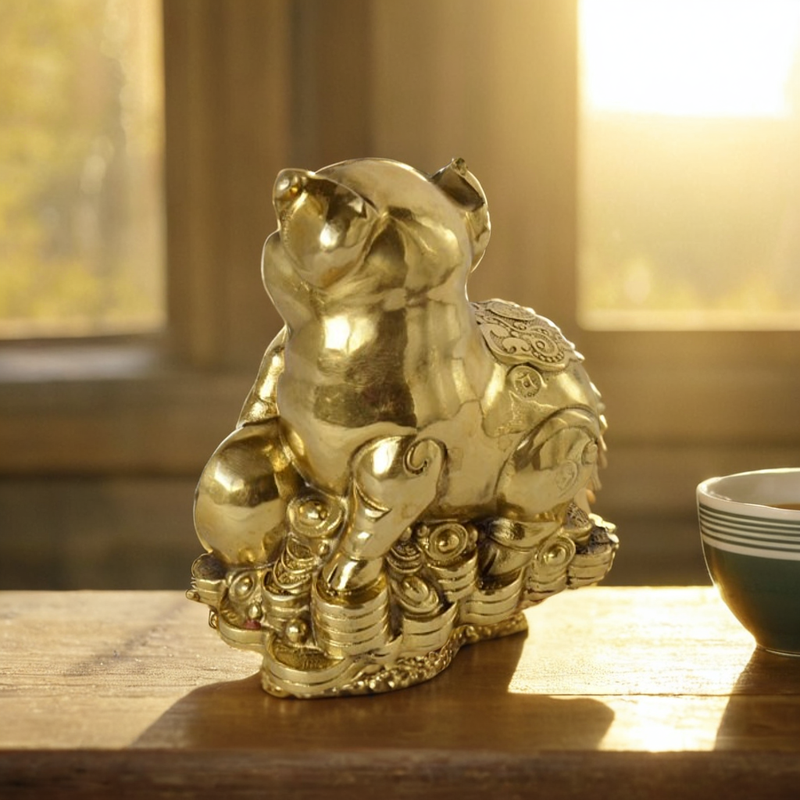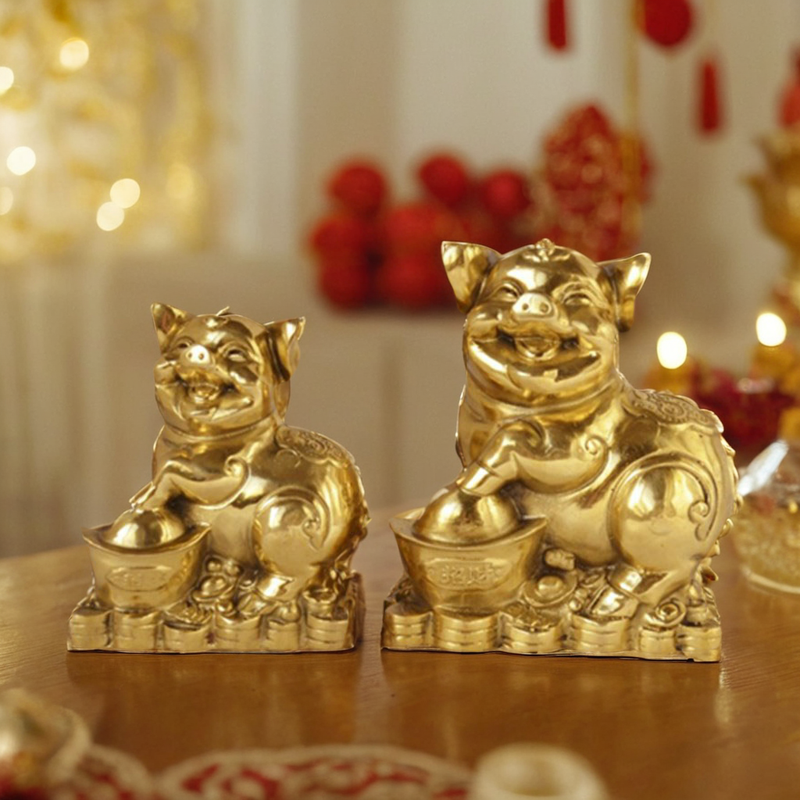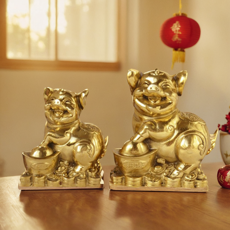 黄铜钱袋猪摆件金猪如意元宝猪客厅书房办公室桌面风水聚财摆放小