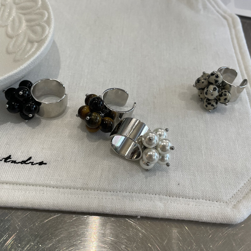 手工天然石黑玛瑙虎眼石串珠戒指小众夸张高级感开口食指指环