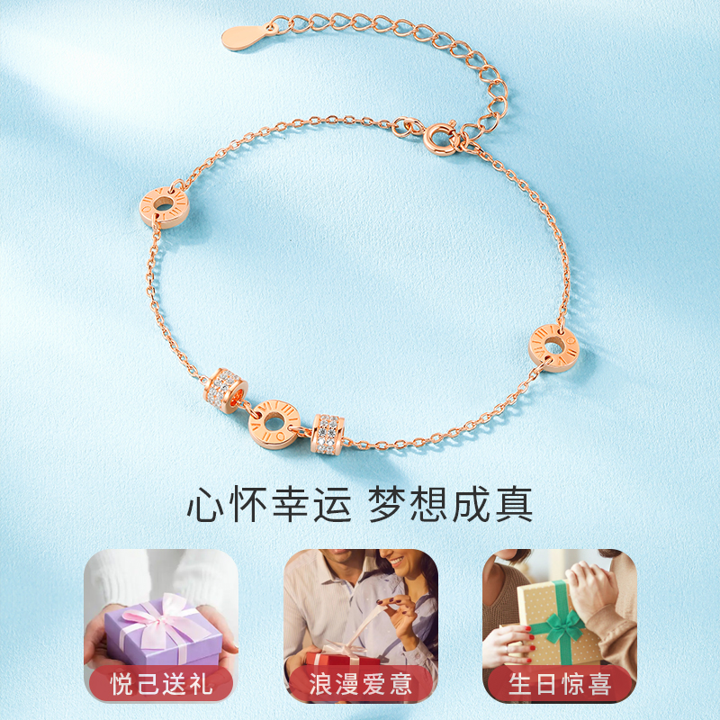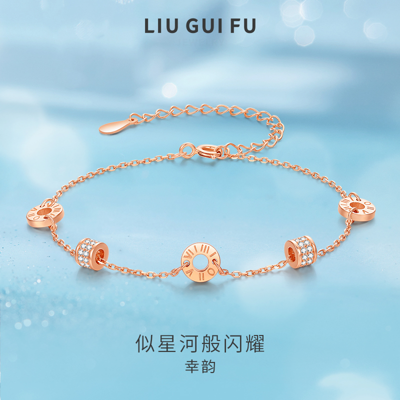 六桂福珠宝S925纯银小蛮腰手链女生轻奢小众精致纯银首饰银饰配饰