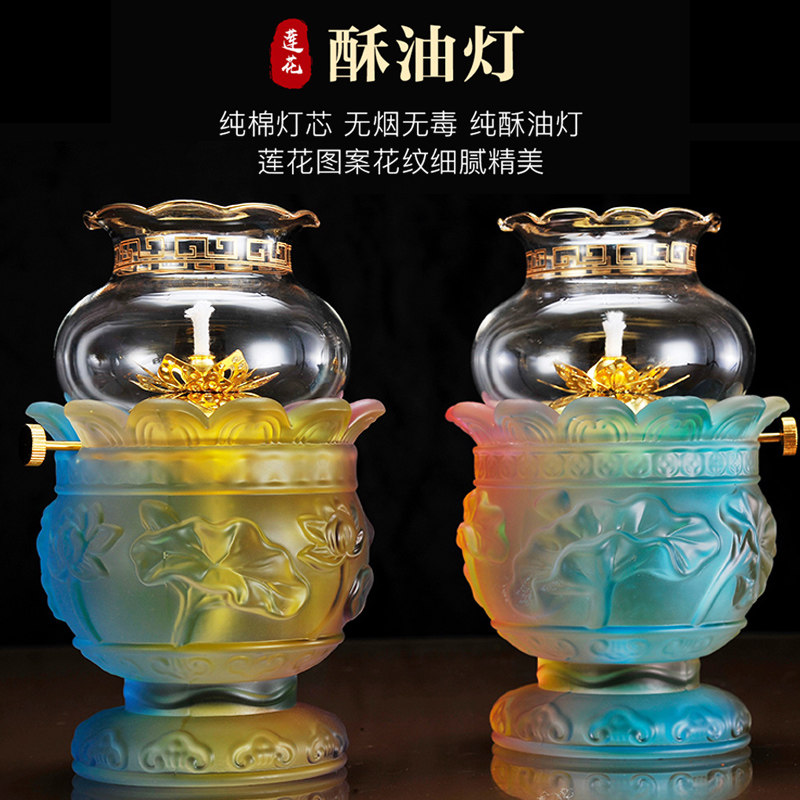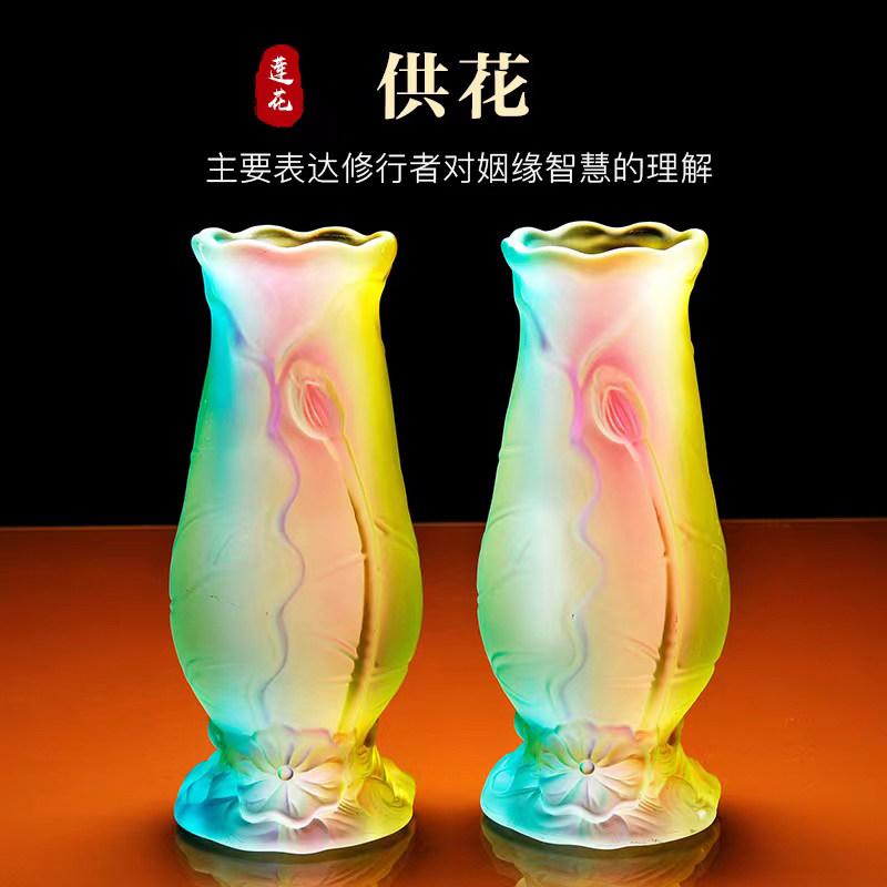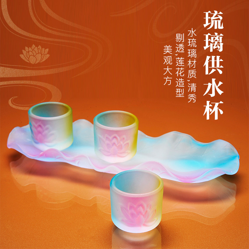 琉璃套装家用花瓶供水杯圣水杯烛台香炉供果盘八吉祥莲花香筒摆件