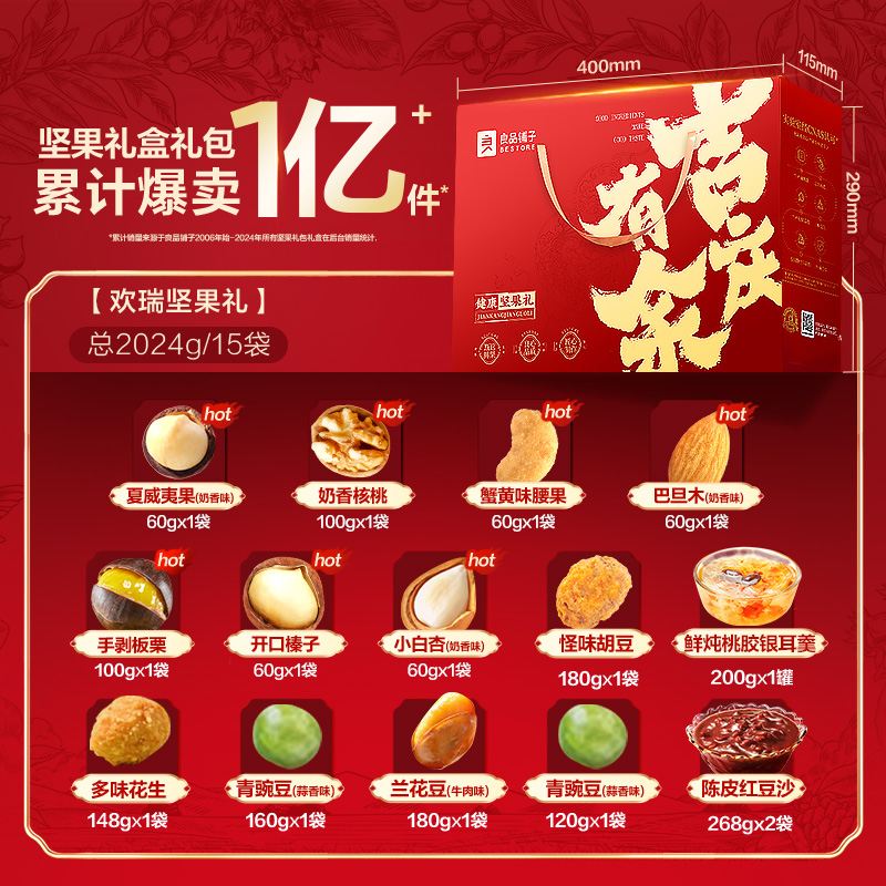 良品铺子坚果礼盒15袋/2024g年货礼盒送长辈走亲戚高档礼包
