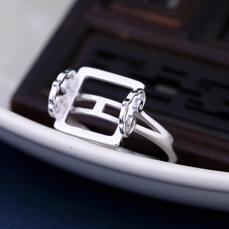 S925银戒指e空托女镶嵌玉石蜜蜡琥珀方戒托11*11 15*15 8*8 13*1