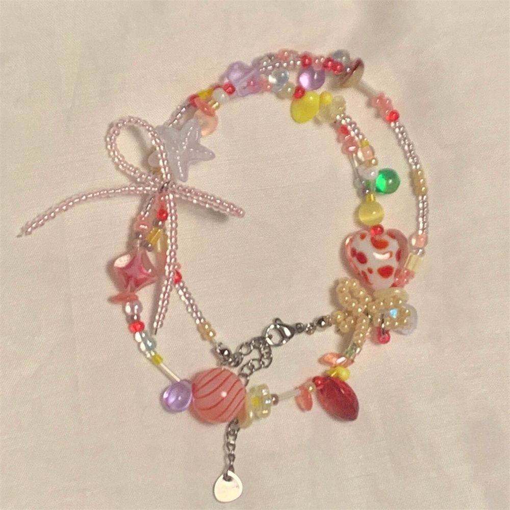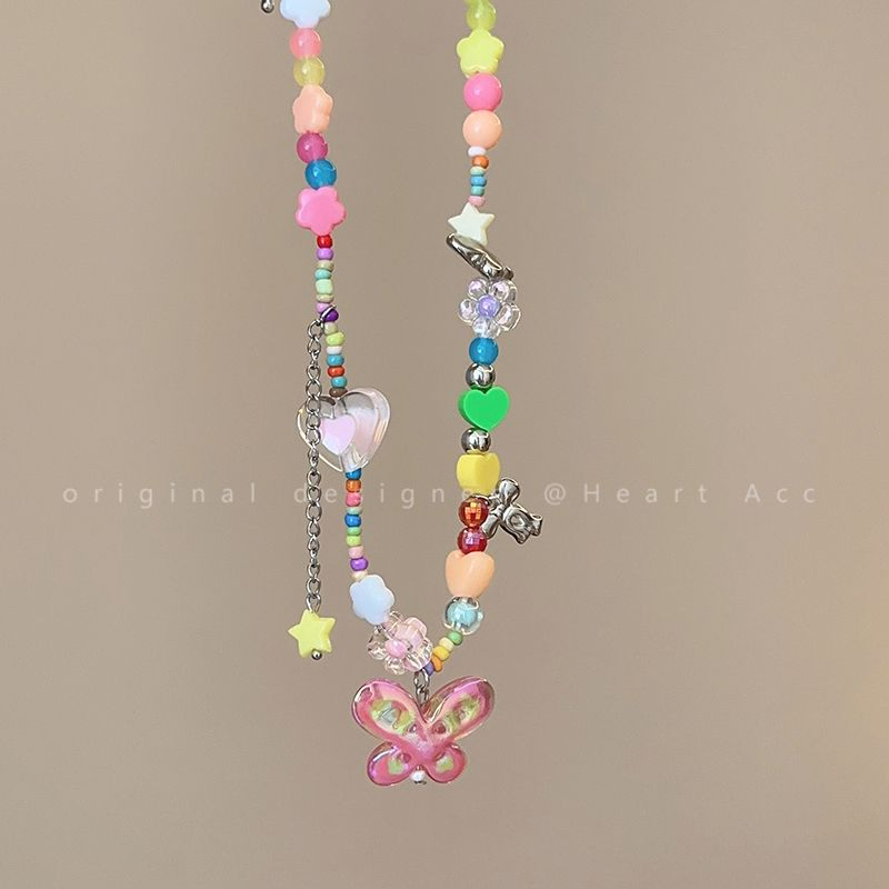 夏日彩色多巴胺串珠项链女2025新款爆款蝴蝶结锁骨链颈链毛衣链