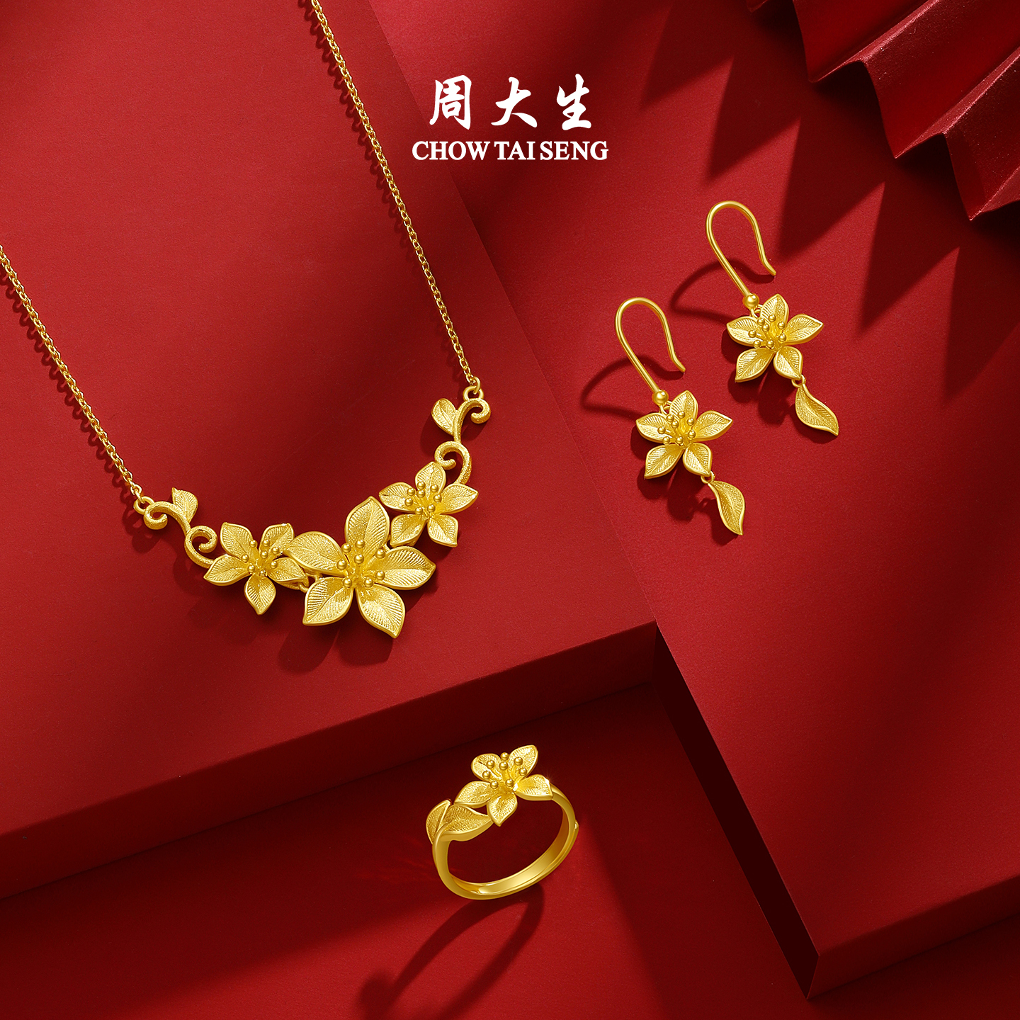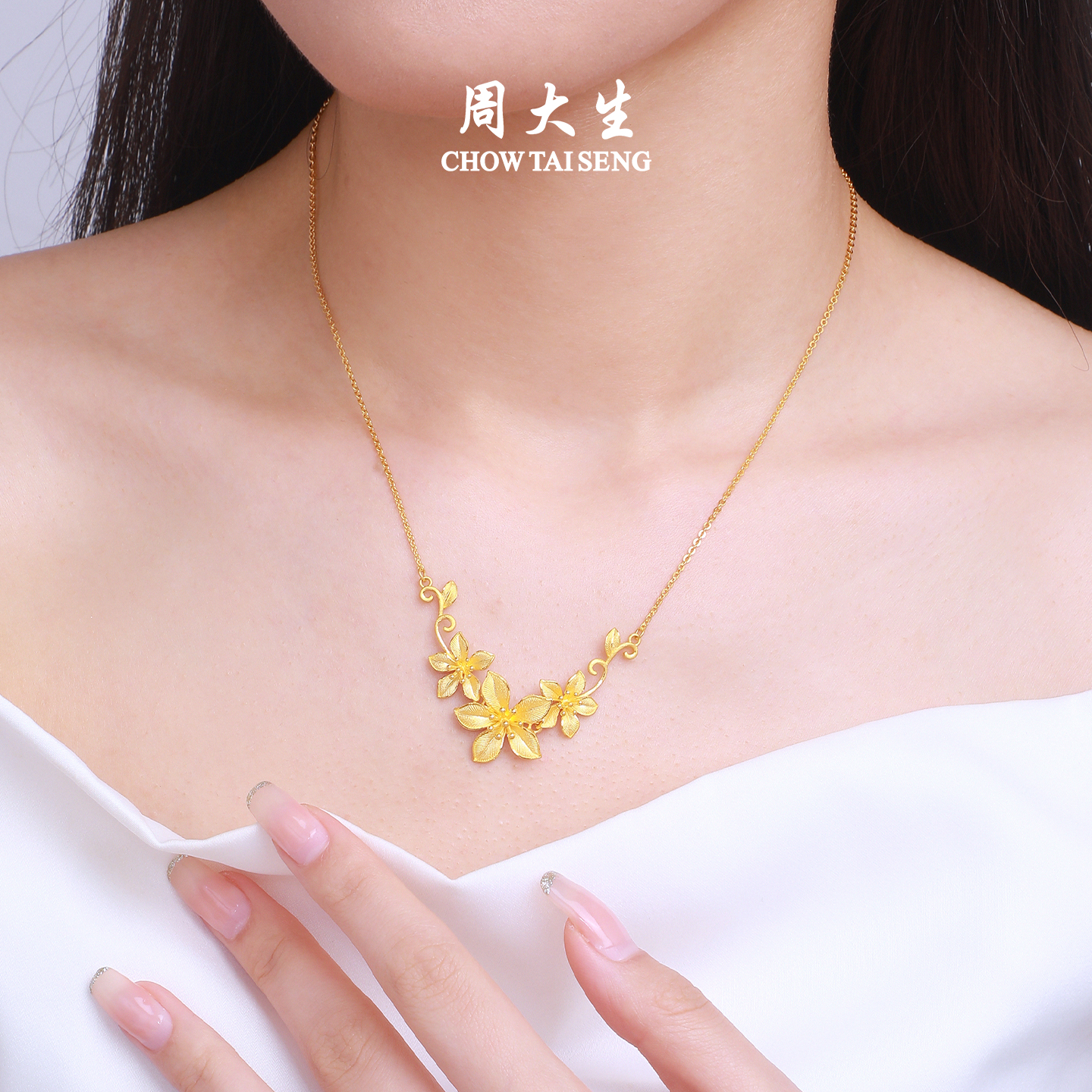 周大生幸福花嫁花烟草黄金项链女足金花朵锁骨套链吊坠婚嫁三金礼