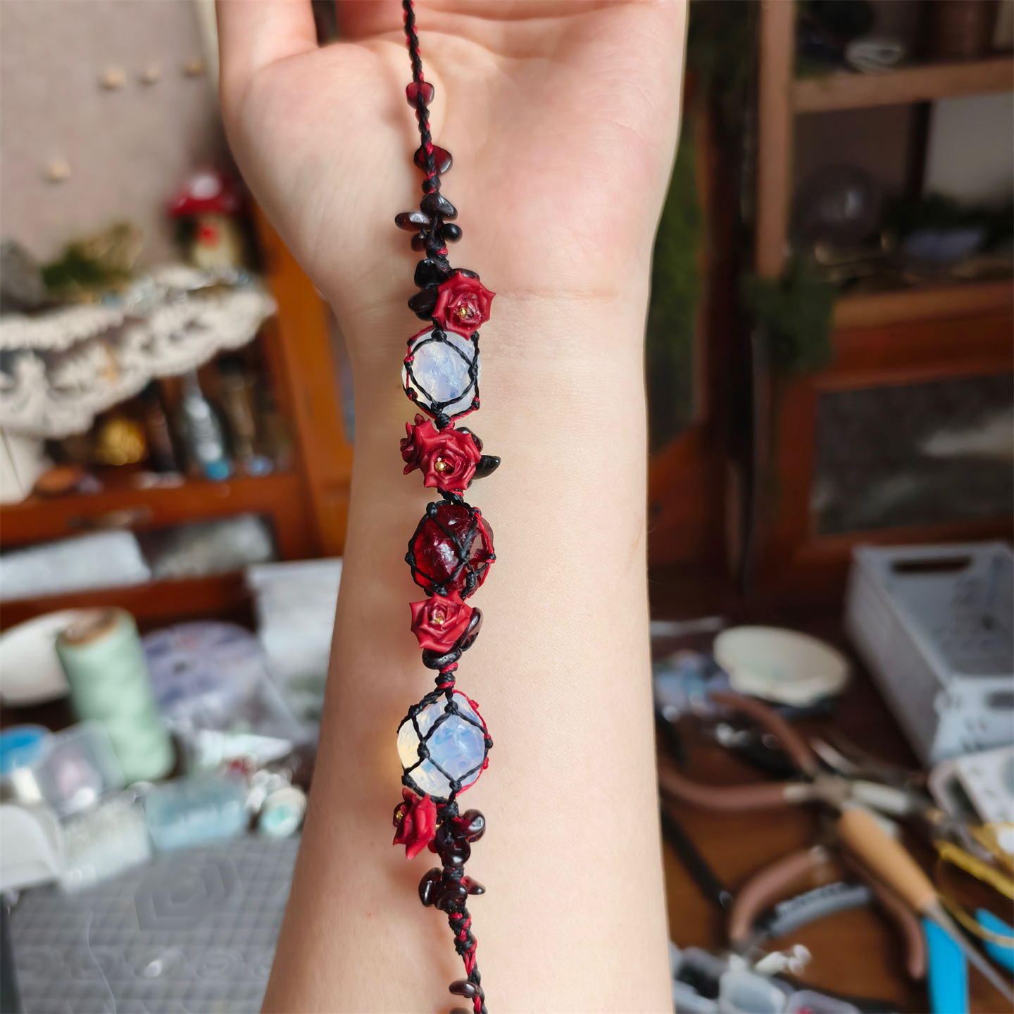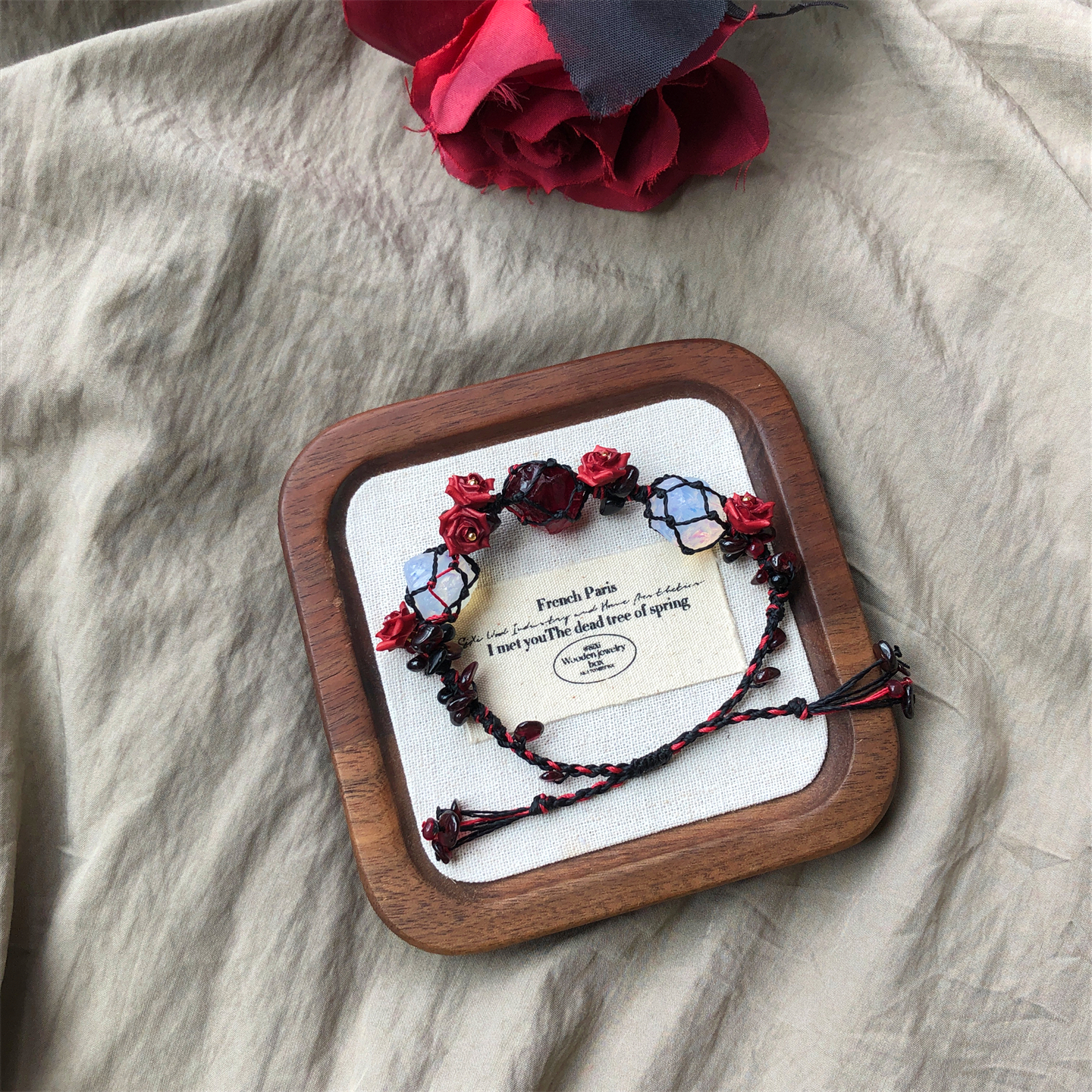 SUIYI 永夜玫瑰 哥特风玫瑰编织手链男女款 暗黑系红琉璃原石编绳
