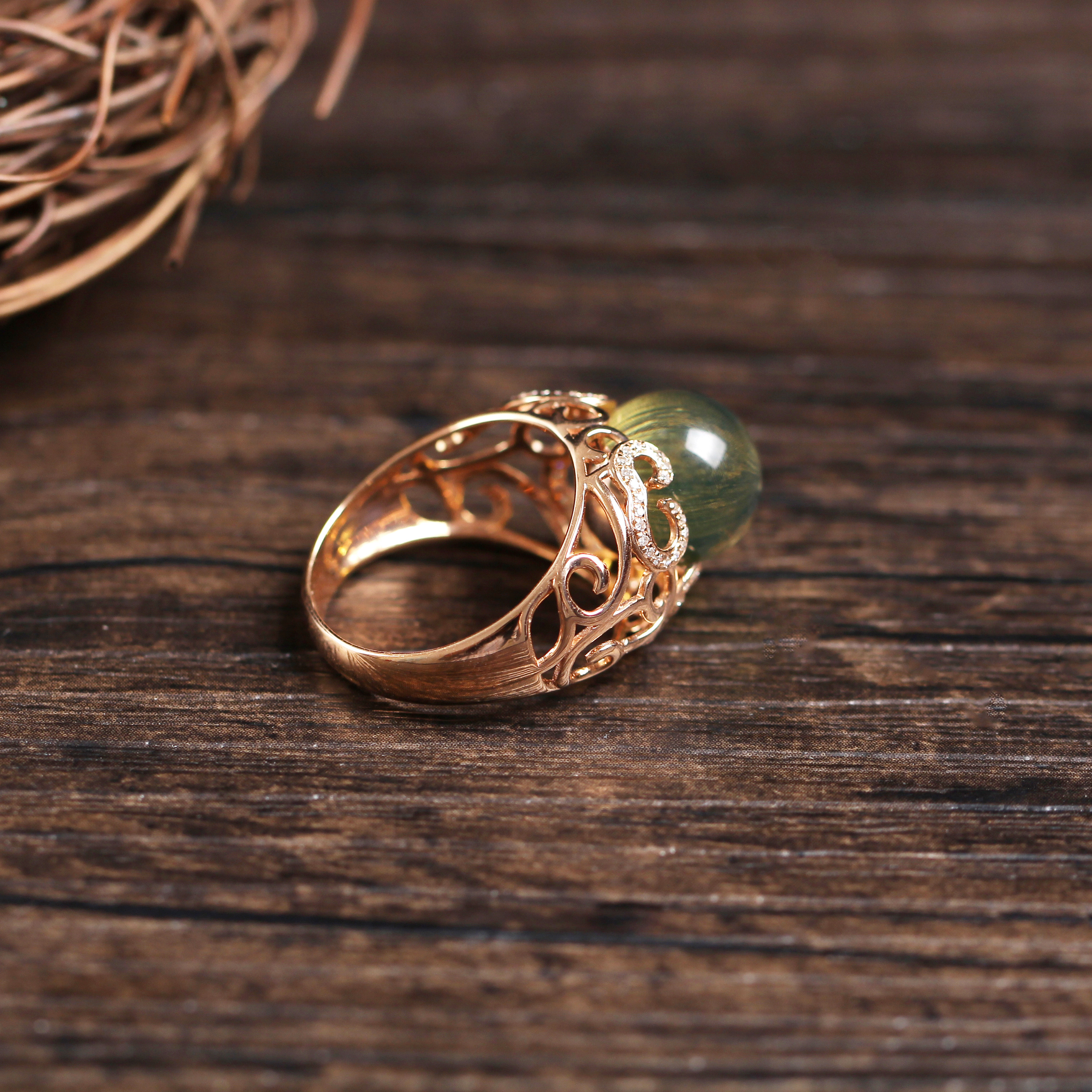 天然墨西哥高蓝净水蓝珀吊坠18K金真钻镶嵌贵气雕花女款琥珀指环