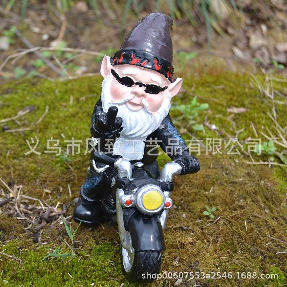 直销新款跨境 竖中指小矮人侏儒哈雷摩托耍酷 花园树脂工艺品摆件
