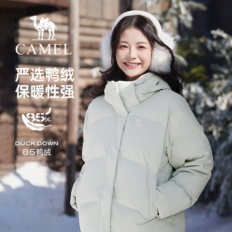 骆驼女装绿色短款羽绒服2025秋冬户外保暖百搭面包服时尚女式外套