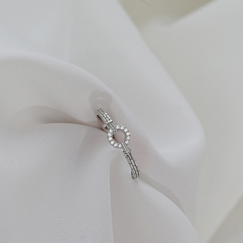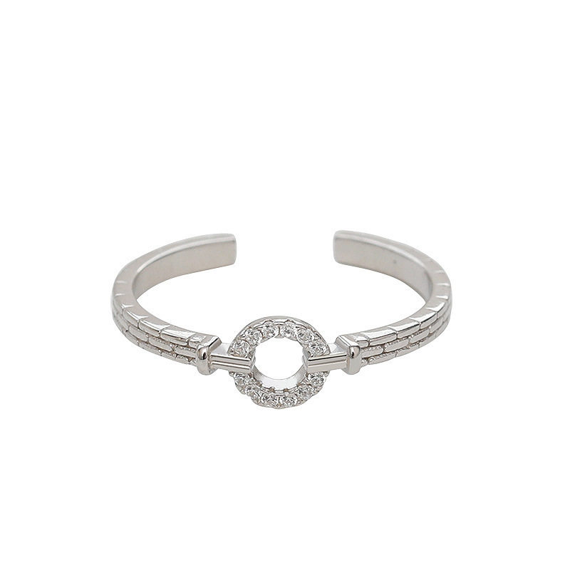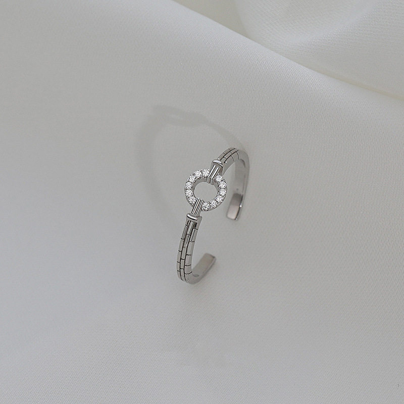 微镶闪钻O字戒指女设计小众韩国网红个性指环开口可调节食指戒