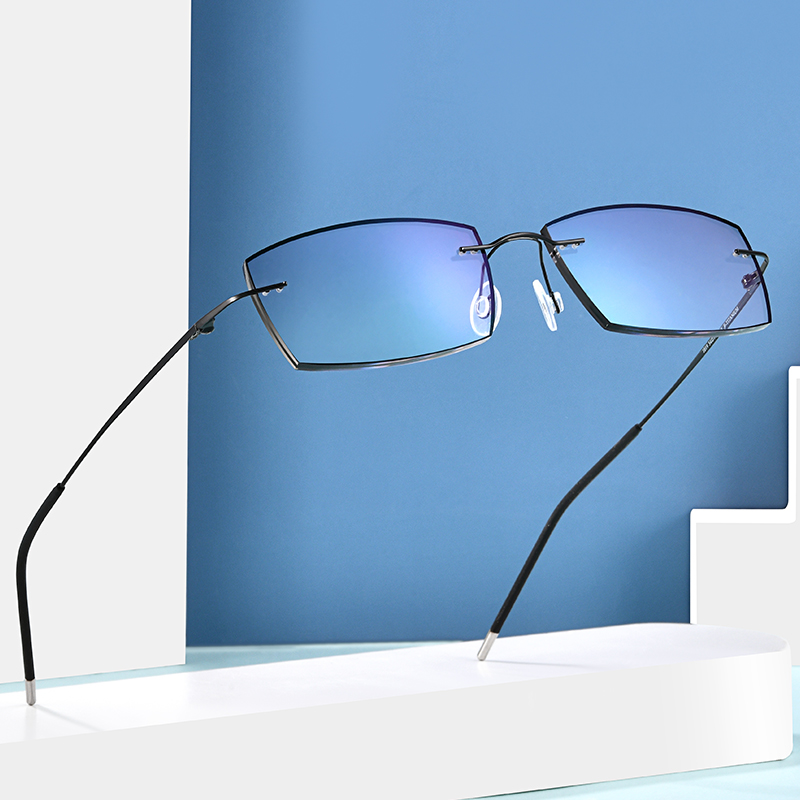 新品无框镶黑边眼镜近视男超轻纯钛配有度数防蓝光辐射眼睛近视镜
