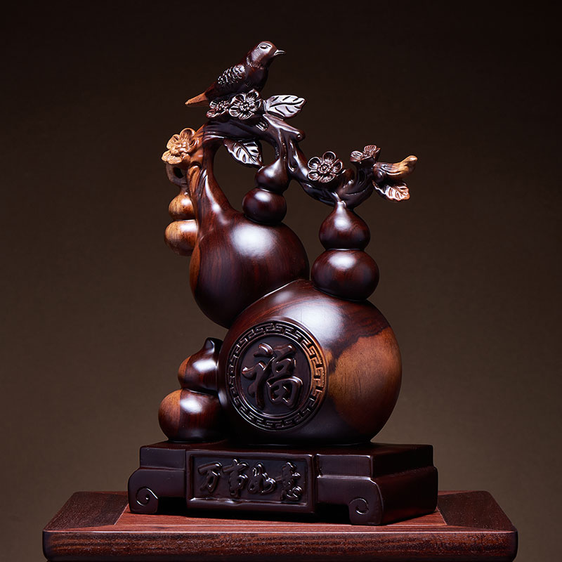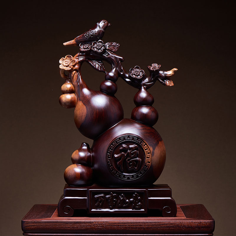 木雕五福临门葫芦摆件实木根雕家居客厅酒柜桌面装饰公司乔迁礼品