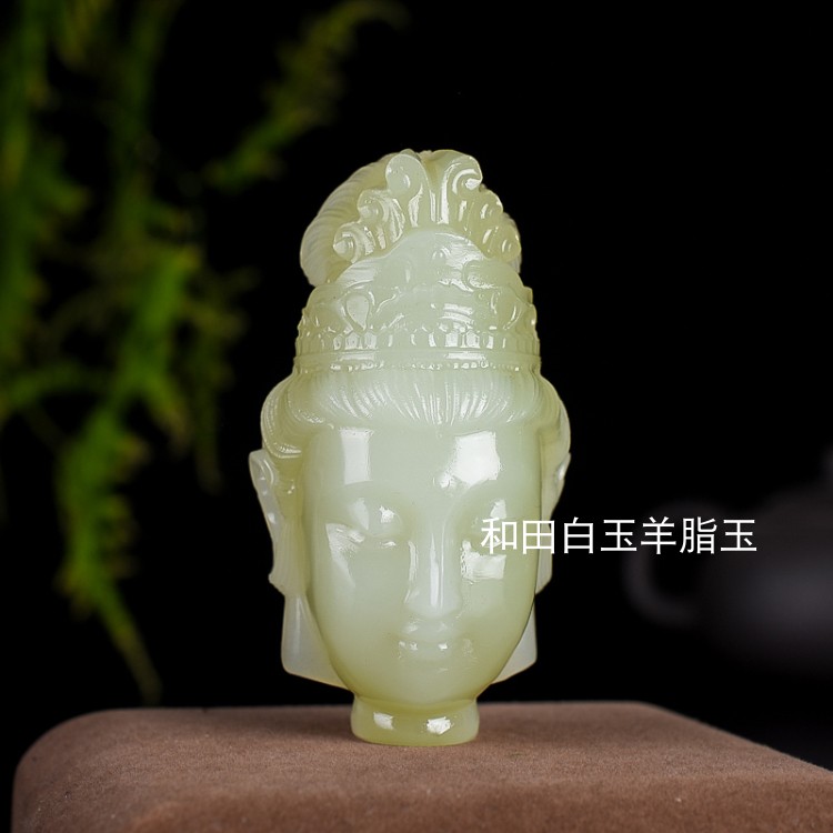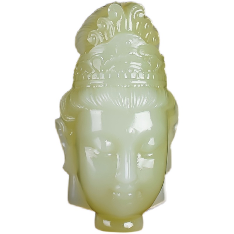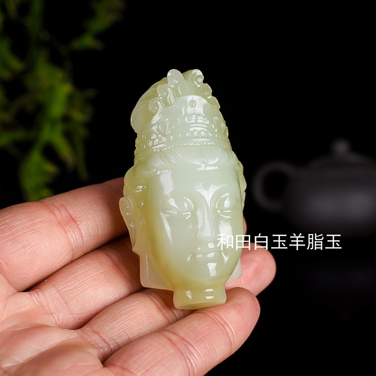 天然新疆和田玉青白玉精雕观音头挂件玉石观音菩萨手把件把玩件