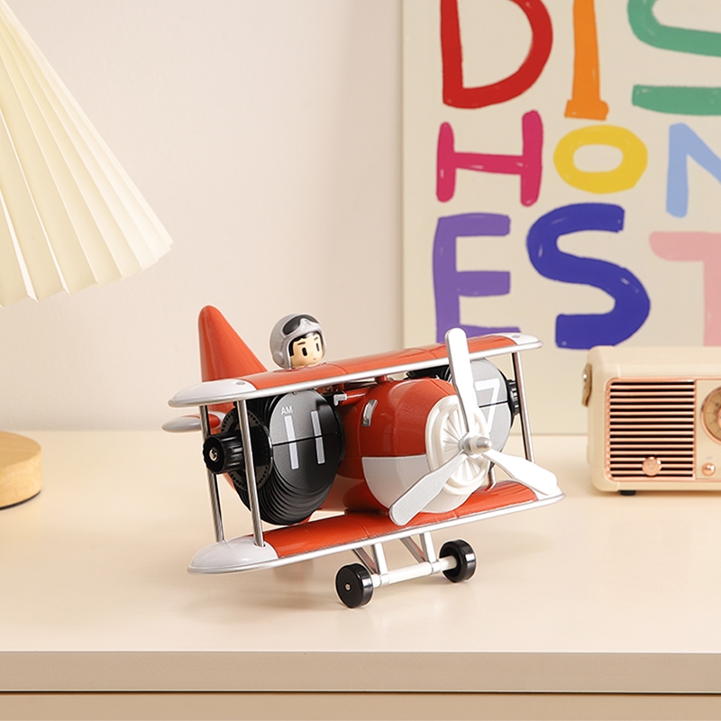 飞机自动翻页时钟桌面摆件创意复古机械表摆台式数字钟表客厅装饰