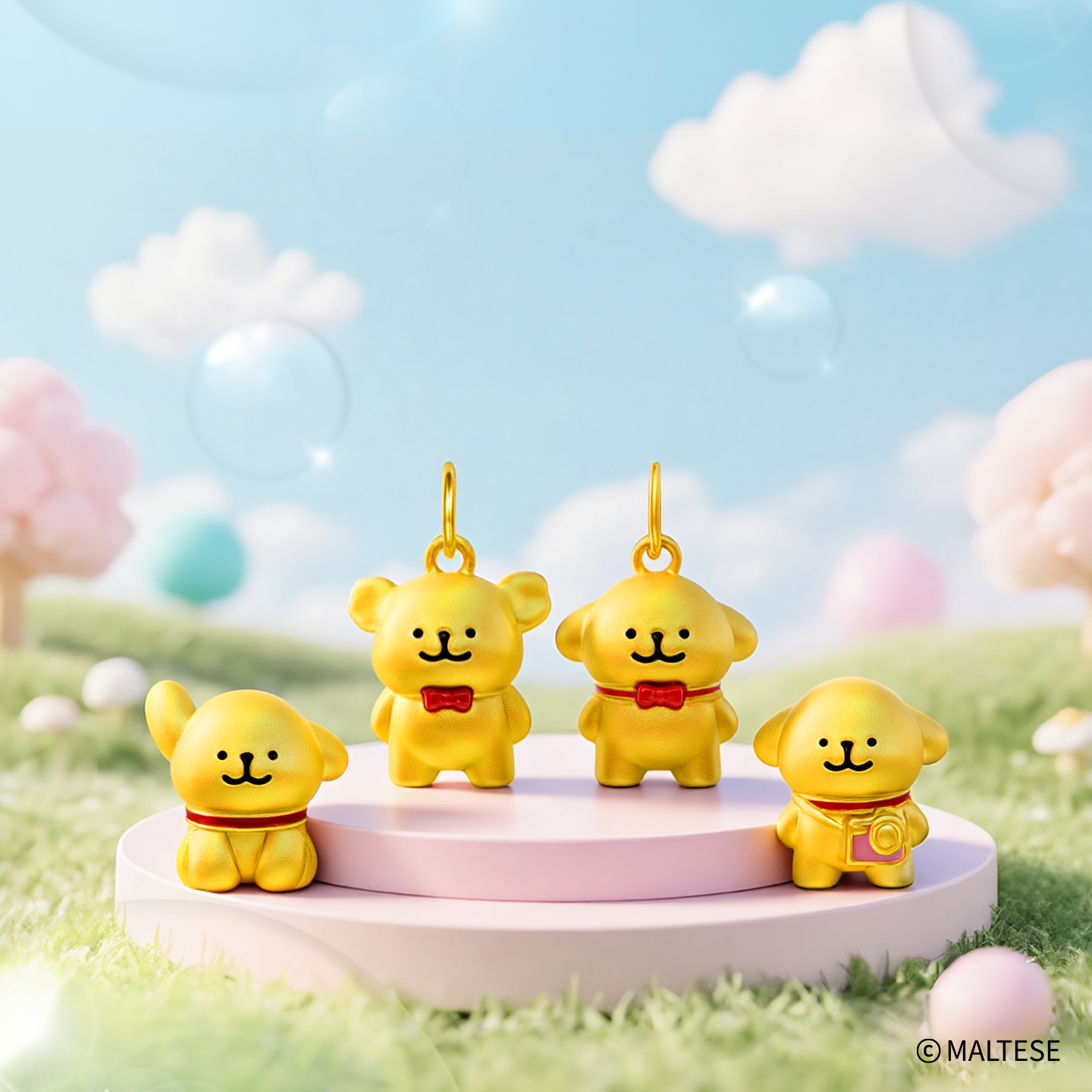 潮宏基线条小狗足金黄金吊坠串珠5D硬金马尔济斯小金毛生日礼物