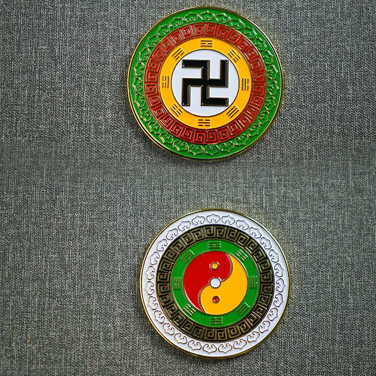 6.5公分双面万字符后天八卦黄万中黄 中红白万中白白万中黄摆件