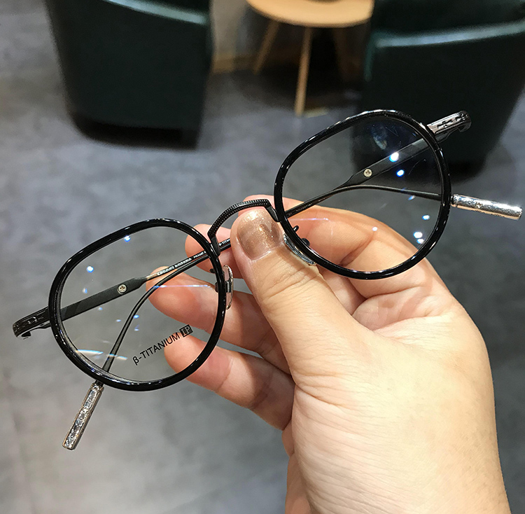 简丹萝心潮百搭眼镜框男小圆小脸钛架超轻高度数学生配近视眼镜架