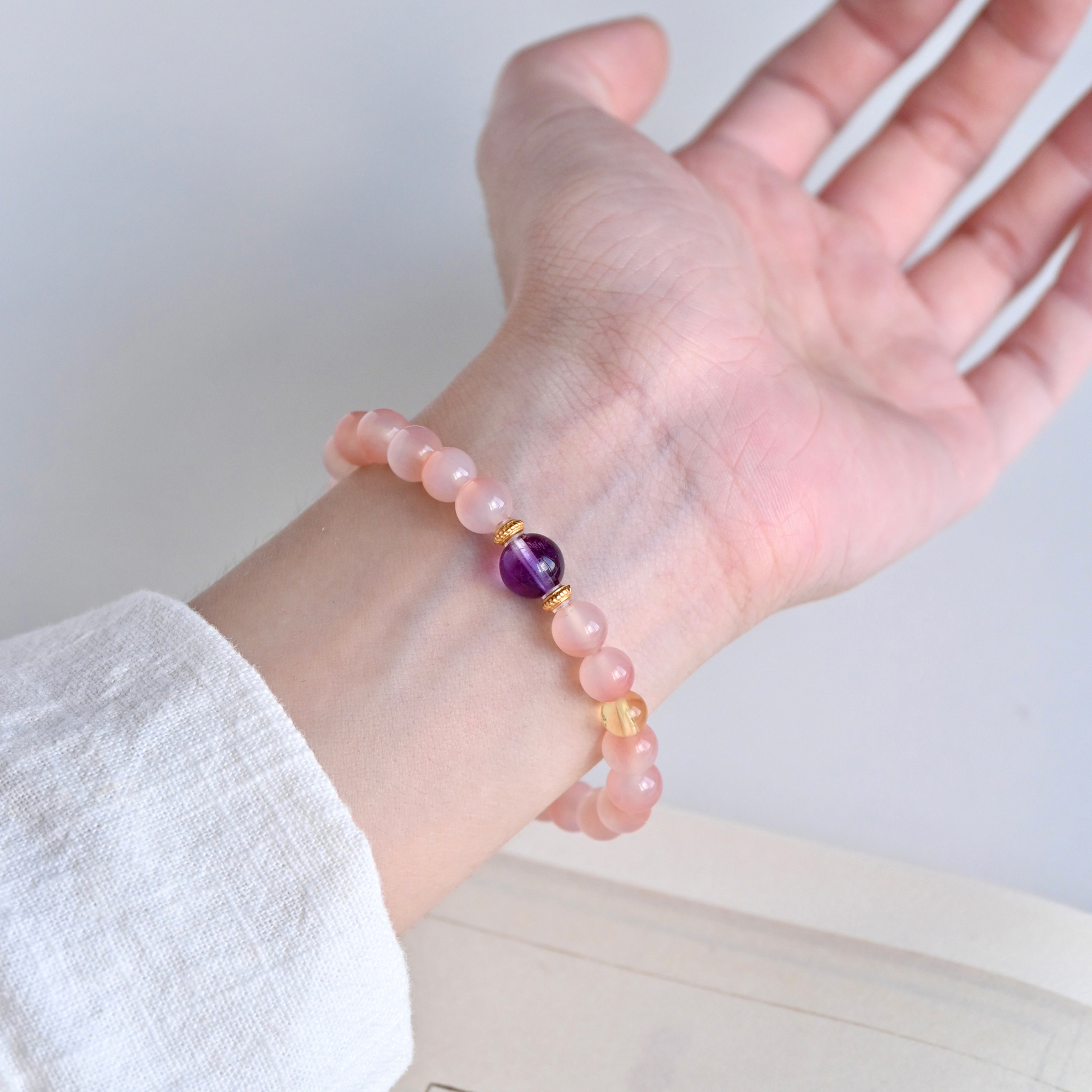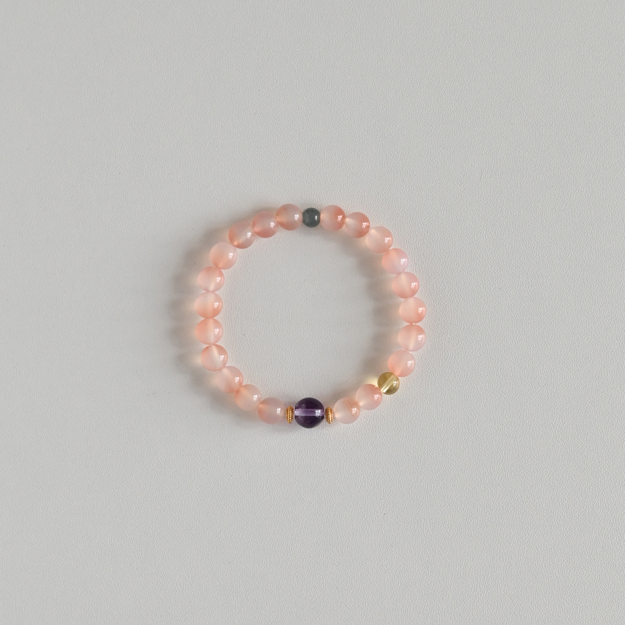 Yangui原创「瑶光」聚宝盆粉玛瑙国风手串纯银紫水晶百搭情侣手链