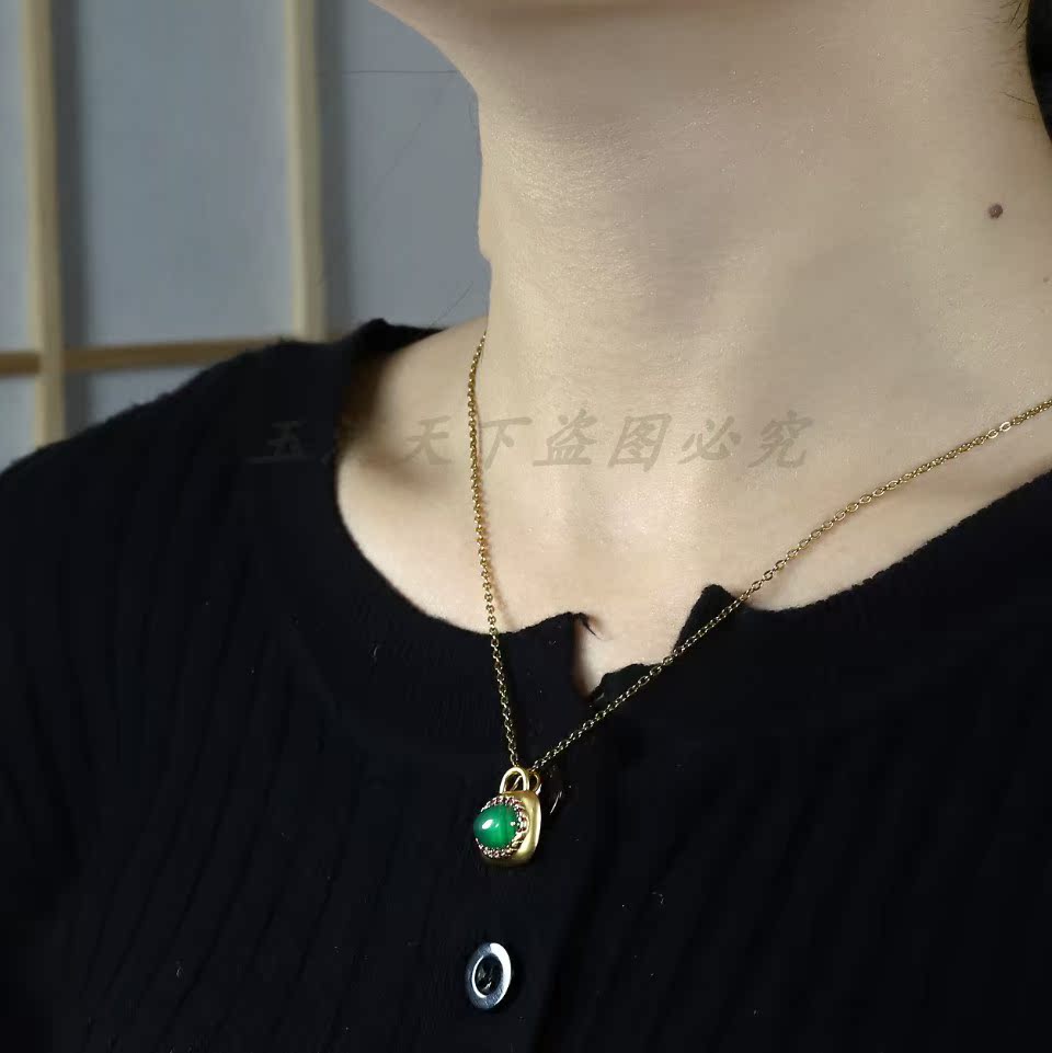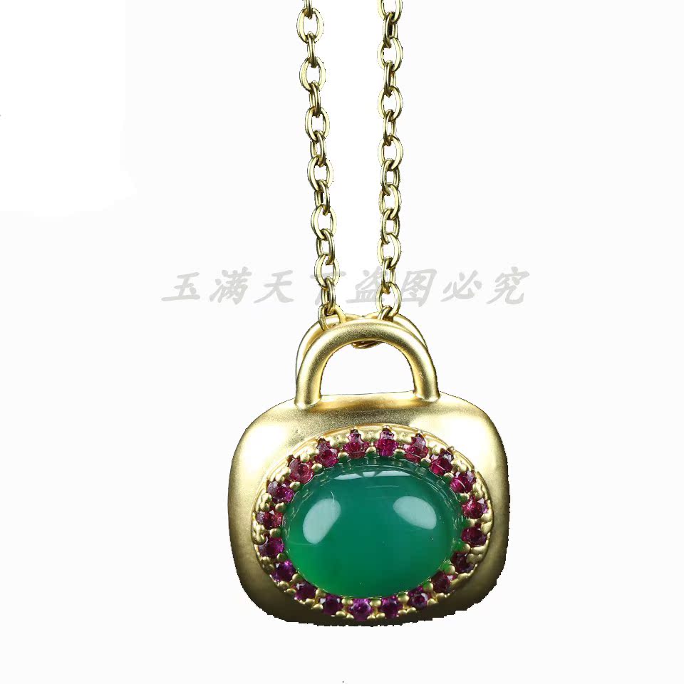天然A货冰种帝王绿玉髓镀24k真金玛瑙挂件女款包包项链百搭锁骨链