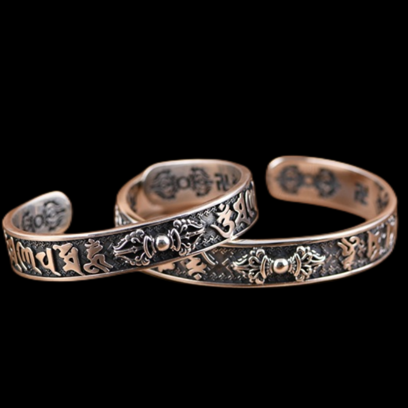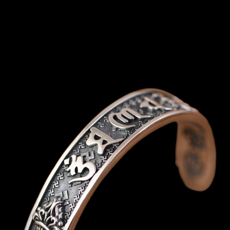 925银手镯名族风复古做旧宽版金刚杵万字符六字真言开口镯子礼物
