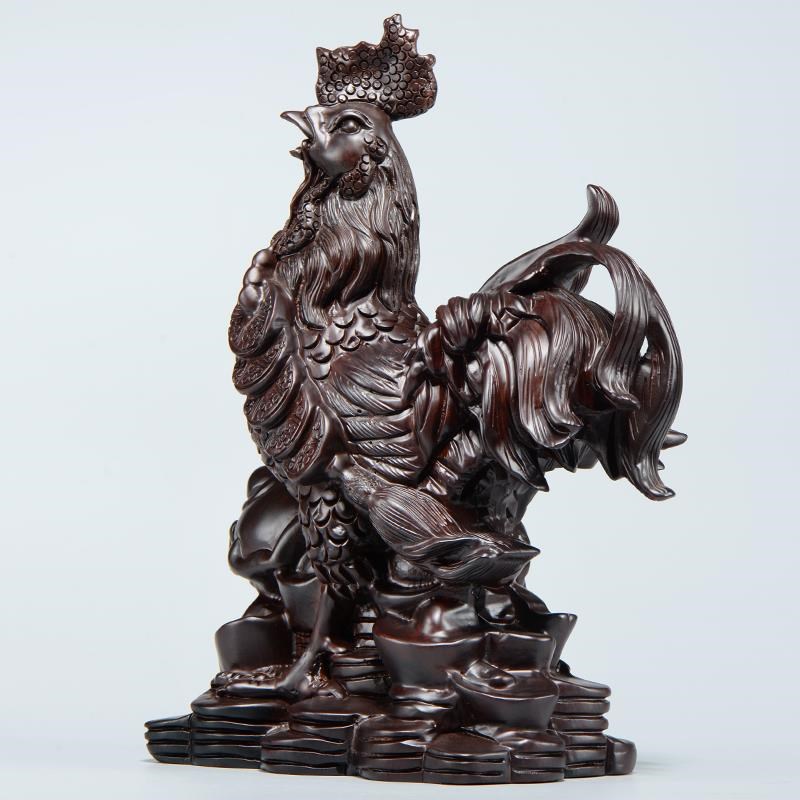 现货速发黑檀木雕鸡摆件根雕大十二生肖鸡实木质雕刻家居装饰品工